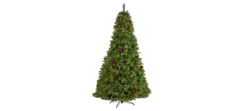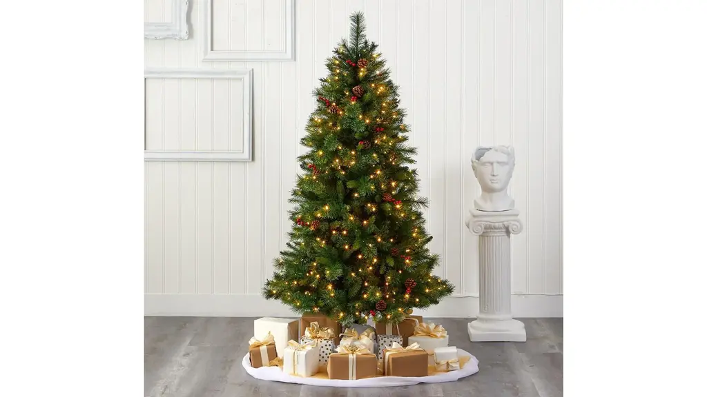 Create a picture-perfect Christmas setting in your home or office with this evergreen 6' pre-lit Aberdeen spruce artificial Christmas tree. Easy and effortless, this artificial Christmas tree boasts a traditional silhouette of seasonal foliage made up of easy-to-bend branches, accented throughout with faux pinecones and holly berries - all of which looks incredibly realistic. Arriving pre-strung with 350 clear LED lights to eliminate unsightly tangles and carefully stabilized on a metal stand, this joyous 6' artificial Christmas tree will complement a range of holiday decor schemes, year after year.