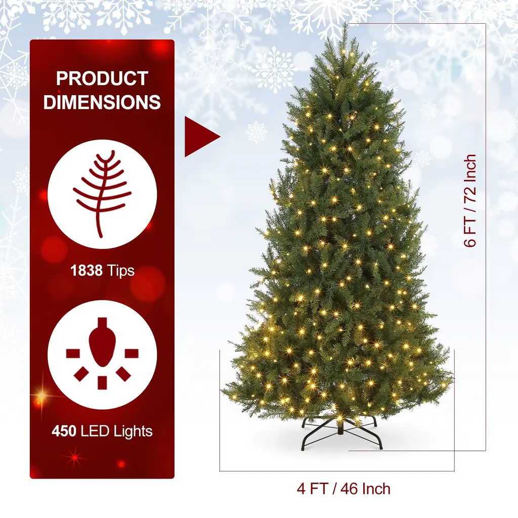 6Ft Pre-Lit Artificial Christmas Tree With Warm White Lights - Green