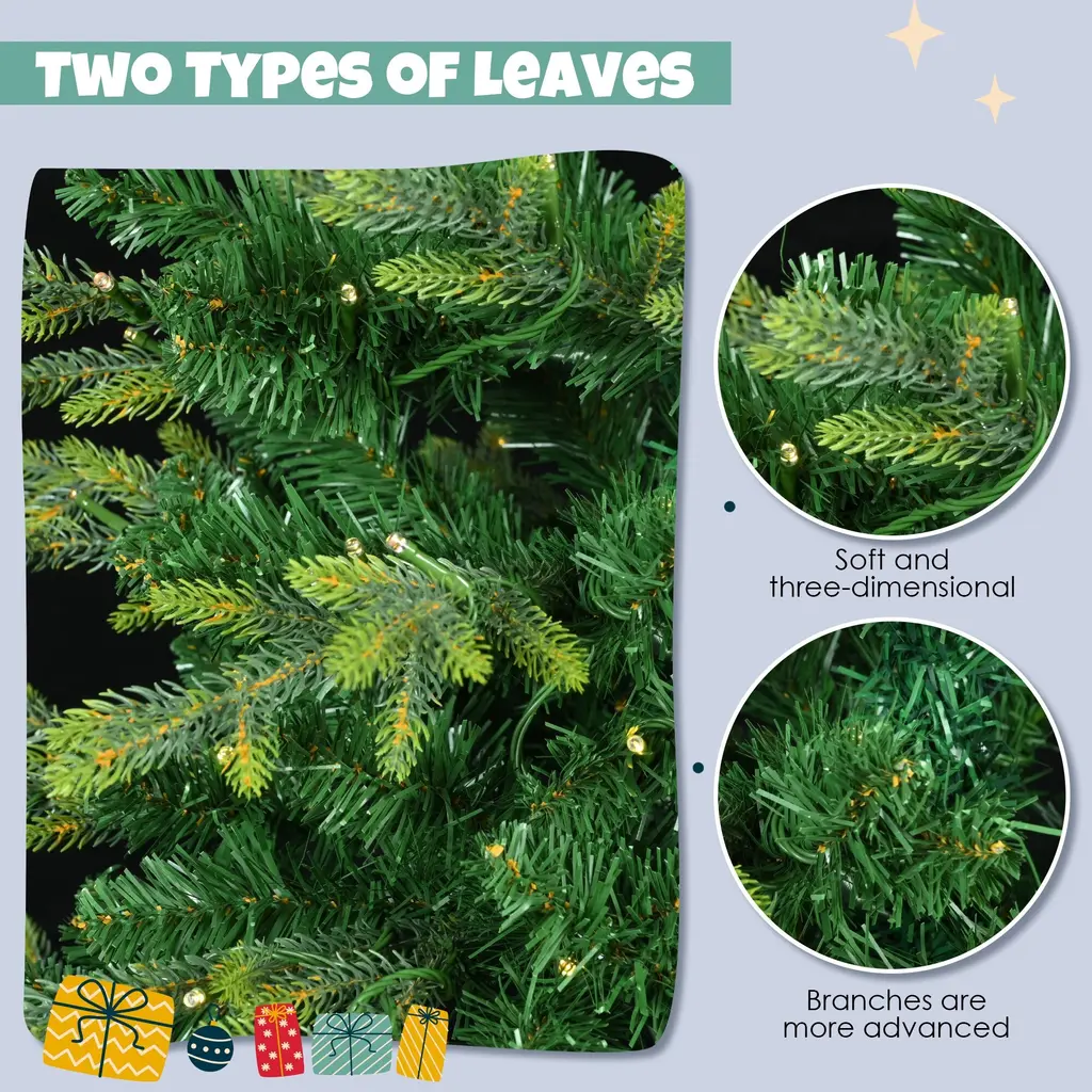 Our 6ft Christmas tree adorned 300 LED lights, the Garland adorned 50 LED lights and the wreath adorned 30 LED lights. The LED lights include both colorful and warm yellow ones. The colorful lights offer 11 flashing modes, creating a warm and joyous atmosphere that permeates every corner.Crafted from premium PE materials, the set is both durable and lifelike, ensuring year-round enjoyment with lasting color and charm.Designed for convenience, the tree comes in three sections with a hinged construction, allowing for quick and easy setup. Enjoy a stress-free decorating experience and simple storage after the holidays.Perfect for home, office, or school, this 3-piece set-including the tree, garland, and wreath—creates a strong festive atmosphere. It’s an ideal choice for adding holiday joy and a touch of seasonal magic to any environment.