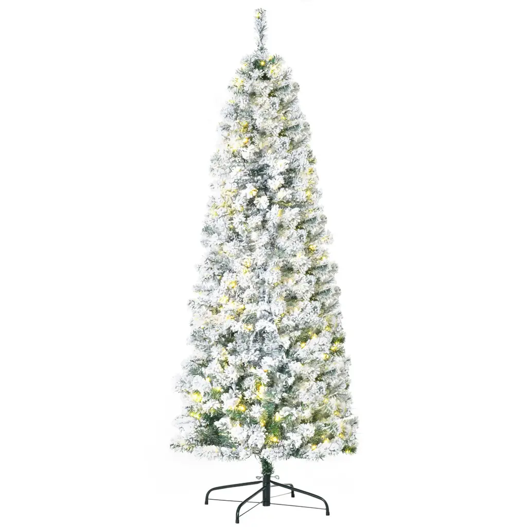 6Ft Pre-Lit Snow-Flocked Slim Douglas Fir Artificial Christmas Tree - N/a - Green