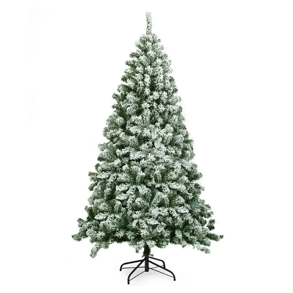 ▌ PRODUCT DETAILS: Description: Christmas opens hope and wishes good things in pairs. Transform your living room into an unique winter wonderland with our snow flocked Christmas tree. The tree, crafted with 928 snow flocked PVC branch tips, is leafy and elegant. It will give you the illusion of a full-body genuine tree. Supported by sturdy metal stand, this artificial Christmas tree will keep standing upright for years to come. At the same time, the metal stand is foldable to facilitate storage. All hinged construction makes the artificial tree easy to set up and fluff. In addition, this Xmas tree can be divided into 3 sections and placed in a storage bag for future reuse easily. With its eye-catching appearance, this snow flocked Christmas tree is definitely a glamorous decoration for any place. Features: 928 branch tips create a full-body look Snow flocked leaves create a unique wintry feel High-quality PVC branch tips with exquisite craftsmanship Sturdy metal stand is stable and breakage-resistant Foldable metal stand helps facilitate storage Easy to set up and fluff with hinged design Eye-catching addition for homes, shops, restaurants, etc Specifications: Material: PVC & Metal Height: 6 FT Net Weight: 16 lbs Number of Tips: 928 Package includes: 1 X Christmas Tree