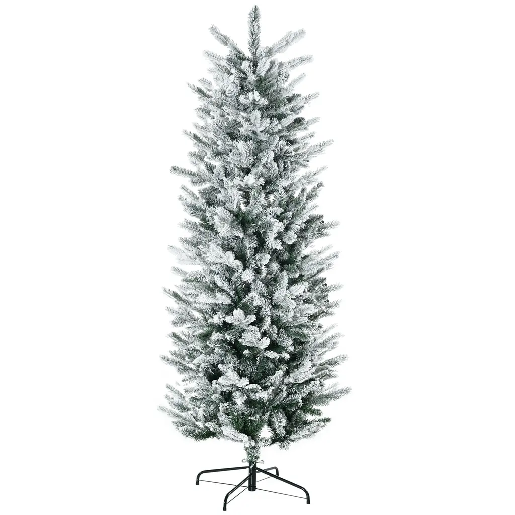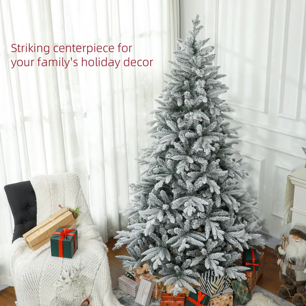 6Ft Snow Flocked Artificial Christmas Tree With 994 Tips, Foldable Metal Stand, Easy Assembly, Hinged Xmas Tree For Home, Office - Green1