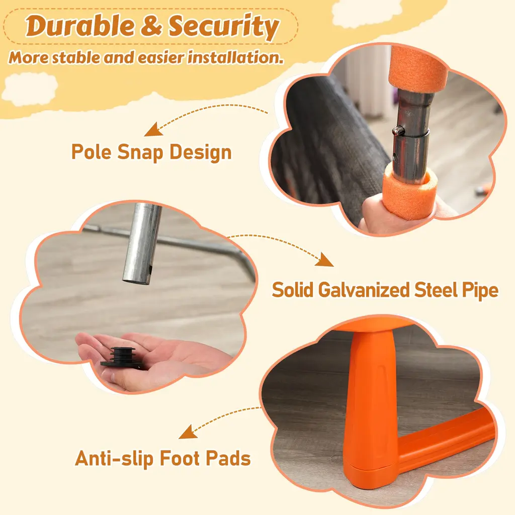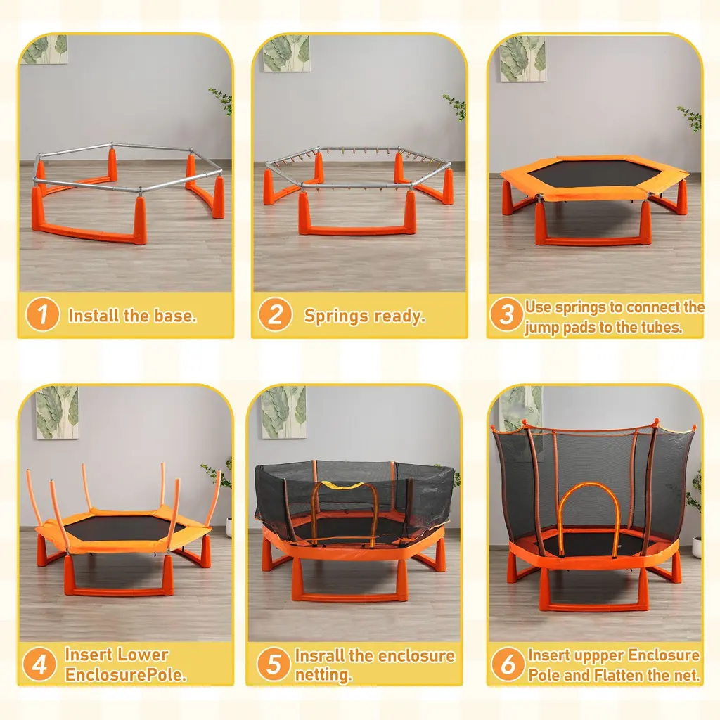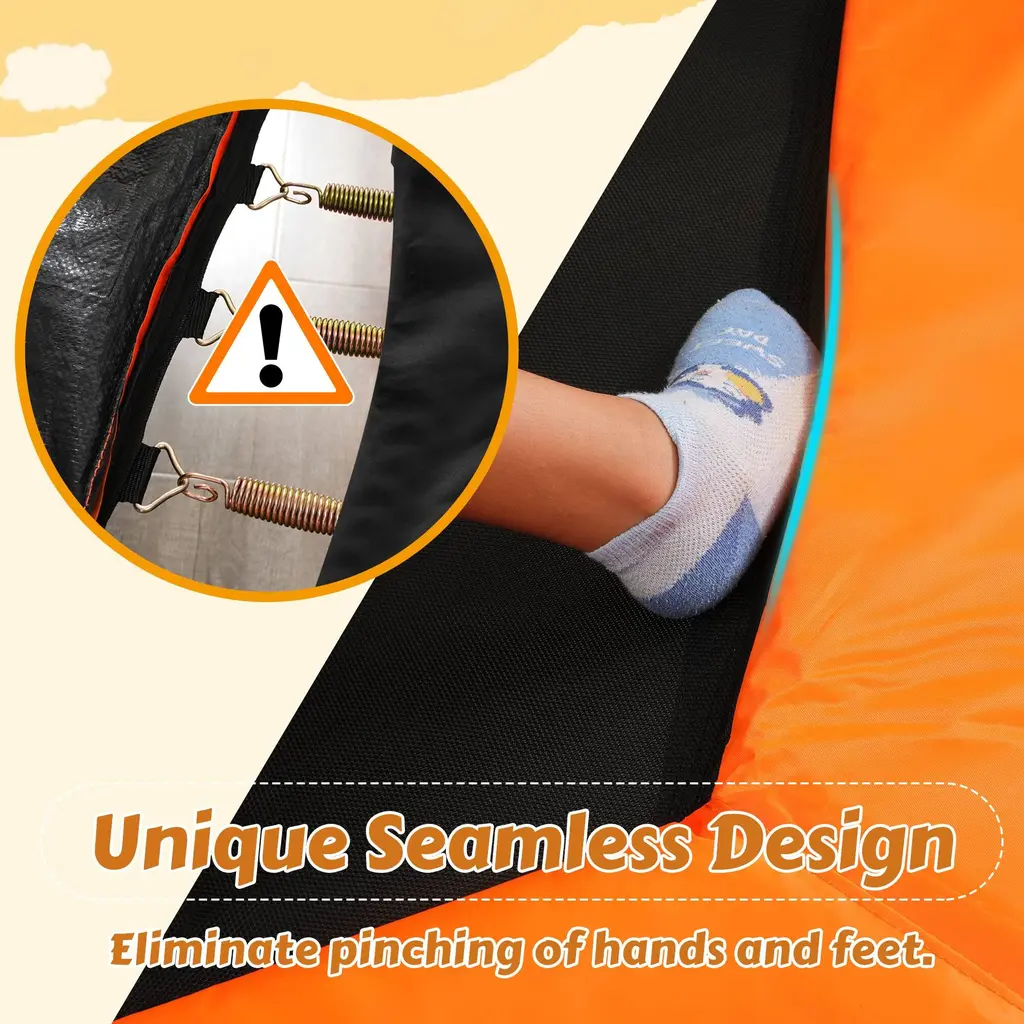 New Look Trampoline Fall-Winter 2023 - With an energetic vibe of summer, the vibrant orange color of the new trampoline serves as an exciting and attractive addition to home. The specially designed curved architecture spreads the weight evenly for added stability while providing maximum space openness.Reassuring Parent-child Playground - The enlarged version gives your toddlers more room to tumble, play with the ocean balls we include in the box, and let your babies explore thoroughly. The full enclosure structure also allows this innovatively shaped trampoline to serve as a cool playpen fence for settling your loved ones.Trusted Classical Brand - As a valued veteran manufacturer, we strictly selects materials and gives priority to safety. The whole trampoline has the best guarantee of bounciness and durability, which qualifies it to be a long-lasting companion for children's growth.Extra Detail Protected - For better safety measures, the seams between the safety pad and the jumping mat of this trampoline are also tightly pre-stitched to ensure no feet caught causing injury when the kids are jumping and tumbling excitedly.Cool Exclusive Playground - The product size after assembling this trampoline is 72''x72''x65.7'', along with the 3 U-shaped legs, allowing it to take up less floor space in comparison, making it perfect play set for indoor or outdoor activity places, such as home, backyard, preschool, etc.