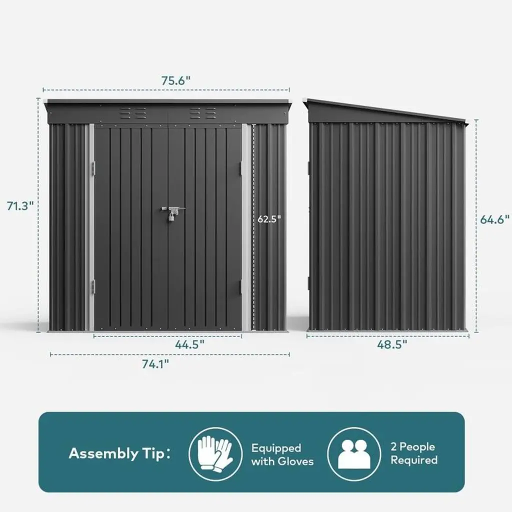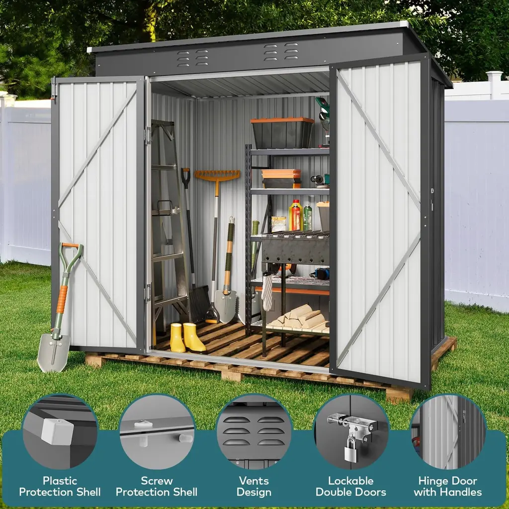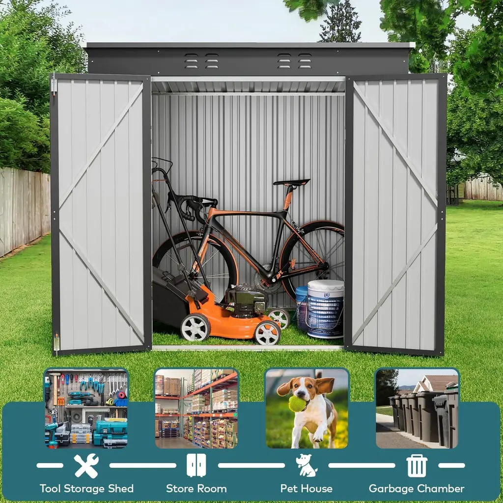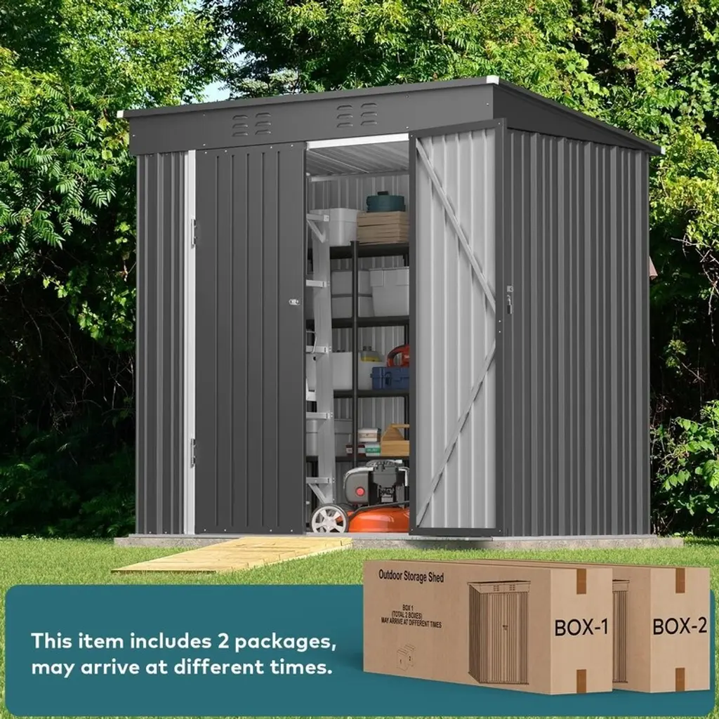 6Ft X 4Ft Outdoor Metal Storage Shed, Garden Tool House With Lockable Door - Grey