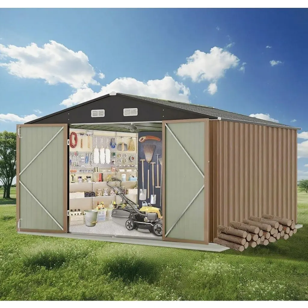6Ftx8ft Outdoor Storage Shed With Floor Base, Metal Garden Shed Storage House With Lockable Sliding Door