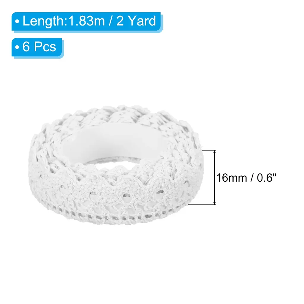 Elevate your crafts to a new level of elegance with our lace washi tape. Lace tapes are perfect for art journals, mixed media art, paper cutting, scrapbooking, diaries, books, interior designers, handmade cards, vision boards, lampshades, notebook covers, gift wrapping and tags, party decorations, photo albums, photo walls, school projects, and other DIY craft projects. These lace washi tapes are designed to meet all your crafting needs.SpecificationColor: YellowMaterial: CottonSize: 16mm x 1.83m / 0.6 Inch x 2 YardPacking List: 6 x Self-Adhesive Lace TapeAdvantageThe lace tape is mainly made of cotton material, good appearance. It is also soft and comfortable to touch.Besides, it can be cut into the length and shape you want with scissors.Packed in a roll shape is more convenient to store and carry.Self-Adhesive design, easy to attach to the items.Instruction1. Easy to use, cut it to the length you want.2. Strip the release liner paper.3. Then you can start to decorate.Note: Please check the size you need before purchasing.