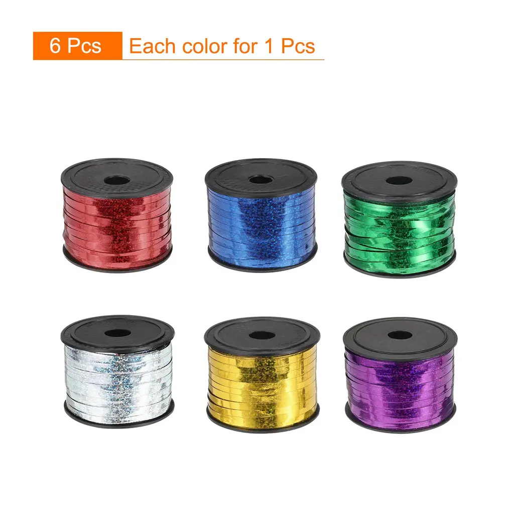 6Pcs 100 Yards Glitter Curling Ribbon Crimped Balloon String Metallic - Multicolor - Multicolor