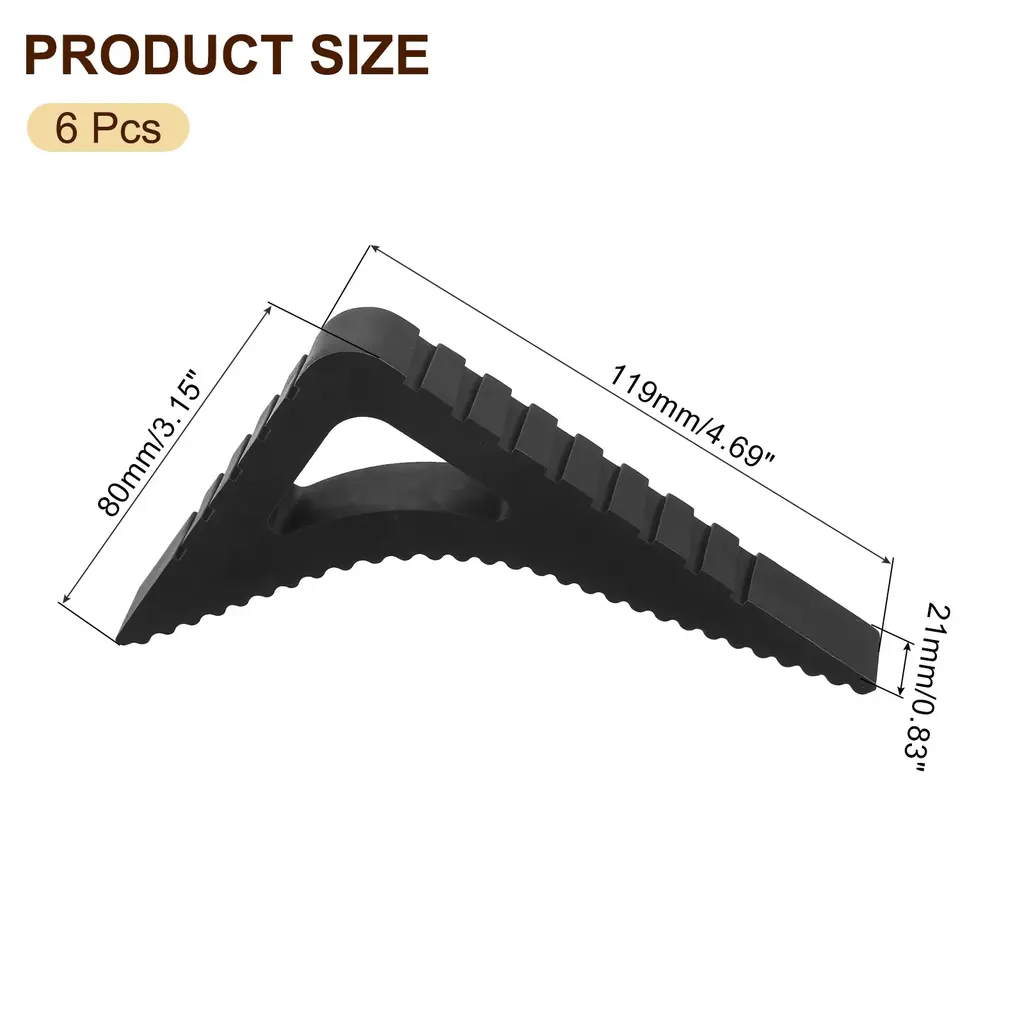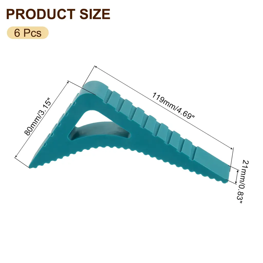 Description:1. Material: The door stopper is made of TPR material, fine workmanship, flexible, sturdy, durable and not easy to damage.2. Design: The triangular design of the door stop allows it to evenly apply force and firmly grip the floor when in use; its soft rubber prevents scratching or damaging the floor surface. The door stop prevents doors from slamming, reducing noise and preventing potential damage to walls or furniture.3. Easy To Use: Just place the rubber door stopper at the bottom of the door to fix it firmly in place. Using the door stopper wedge can keep the door open without worrying about the door accidentally slipping or closing.4. Wide Application: These door stopper wedges can be applied to various occasions, such as offices, homes and hotels. It is suitable for floors, carpets, tiles, windows, etc.Specification:Color: GreyMaterial: TPRTotal Size: 119 mm x 80 mm x 21 mm / 4.69“ x 3.15" x 0.83" (L*W*H)Package Content: 6pcs x Door Stopper