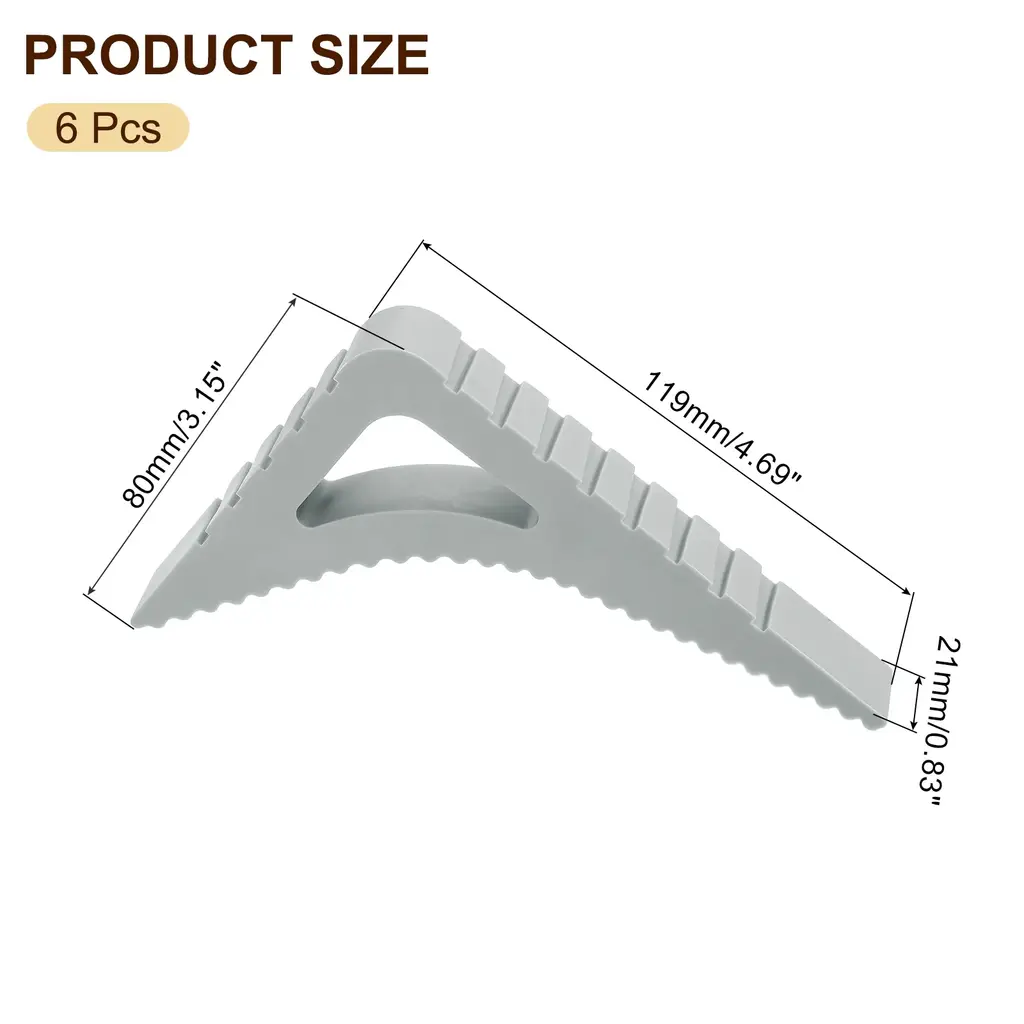 Description:1. Material: The door stopper is made of TPR material, fine workmanship, flexible, sturdy, durable and not easy to damage.2. Design: The triangular design of the door stop allows it to evenly apply force and firmly grip the floor when in use; its soft rubber prevents scratching or damaging the floor surface. The door stop prevents doors from slamming, reducing noise and preventing potential damage to walls or furniture.3. Easy To Use: Just place the rubber door stopper at the bottom of the door to fix it firmly in place. Using the door stopper wedge can keep the door open without worrying about the door accidentally slipping or closing.4. Wide Application: These door stopper wedges can be applied to various occasions, such as offices, homes and hotels. It is suitable for floors, carpets, tiles, windows, etc.Specification:Color: GreyMaterial: TPRTotal Size: 119 mm x 80 mm x 21 mm / 4.69“ x 3.15" x 0.83" (L*W*H)Package Content: 6pcs x Door Stopper