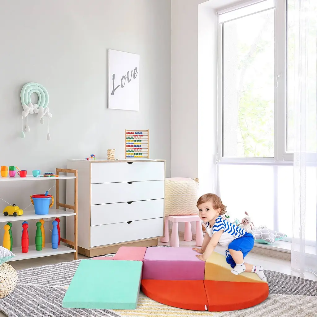 Explore and play safely with our Toddler Foam Climbing Blocks Set, featuring high-quality suede and foam with a certain support, soft and firm for a secure playtime. Boost your toddler's physical development as they climb, crawl, and slide. This set promotes motor skills, enhances balance, and provides a stimulating environment for growth and fun. Includes Triangle, Large cuboid, small cuboid, Half Moon, Wedge and Cylinder. Combine these pieces in various ways to enhance your child's climbing experience. The surface of this indoor climbing is easy to remove, features smooth zippers, hidden zippers and handles, Very convenient to take and use and is specially designed for children.
