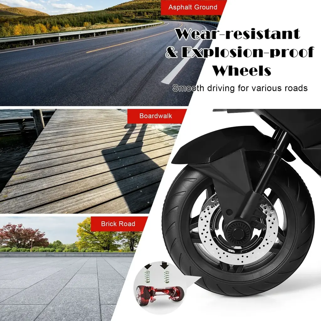 Description:This 6V electric motorcycle for kids is not just a toy; it's a gateway to adventure and excitement. The simple push of the electric pedal gives children the thrill of movement and control. The working headlights and horn add an extra layer of realism and entertainment, making their playtime more immersive. The training wheels ensure stability and safety, giving parents peace of mind. It's a perfect way for kids to explore their imagination and have hours of fun outdoors or in the backyard. The battery-powered design is eco-friendly and convenient, allowing for easy charging and continuous play. This motorcycle is a wonderful gift that will bring joy and create lasting memories for your little ones.