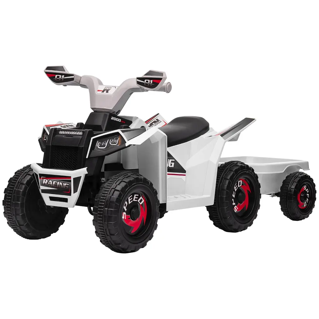 6V Kids Atv Quad Car With Back Trailer, Electric Ride-On For Toddlers With Forward/reverse, And Wear-Resistant Wheels - White