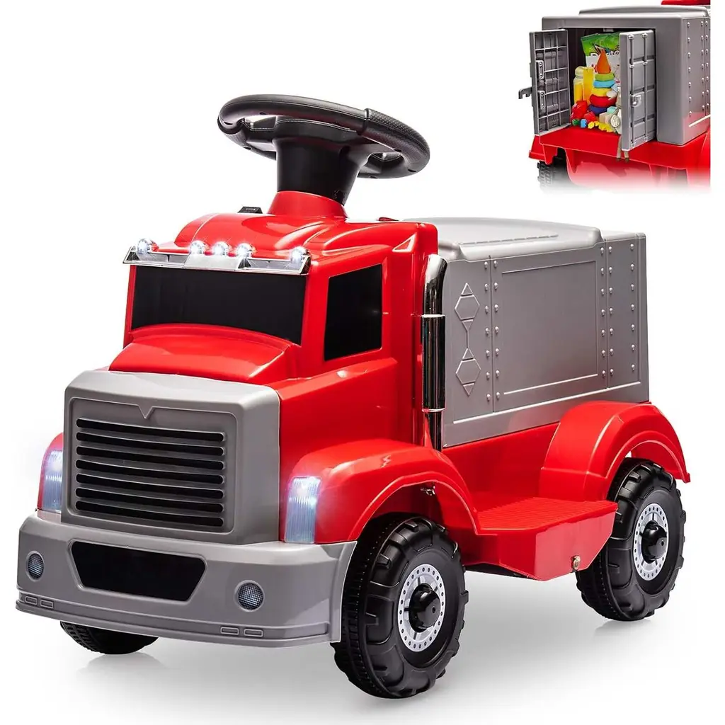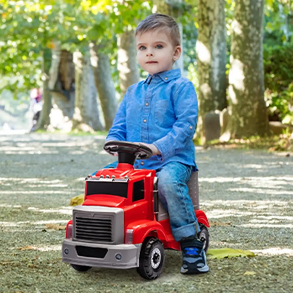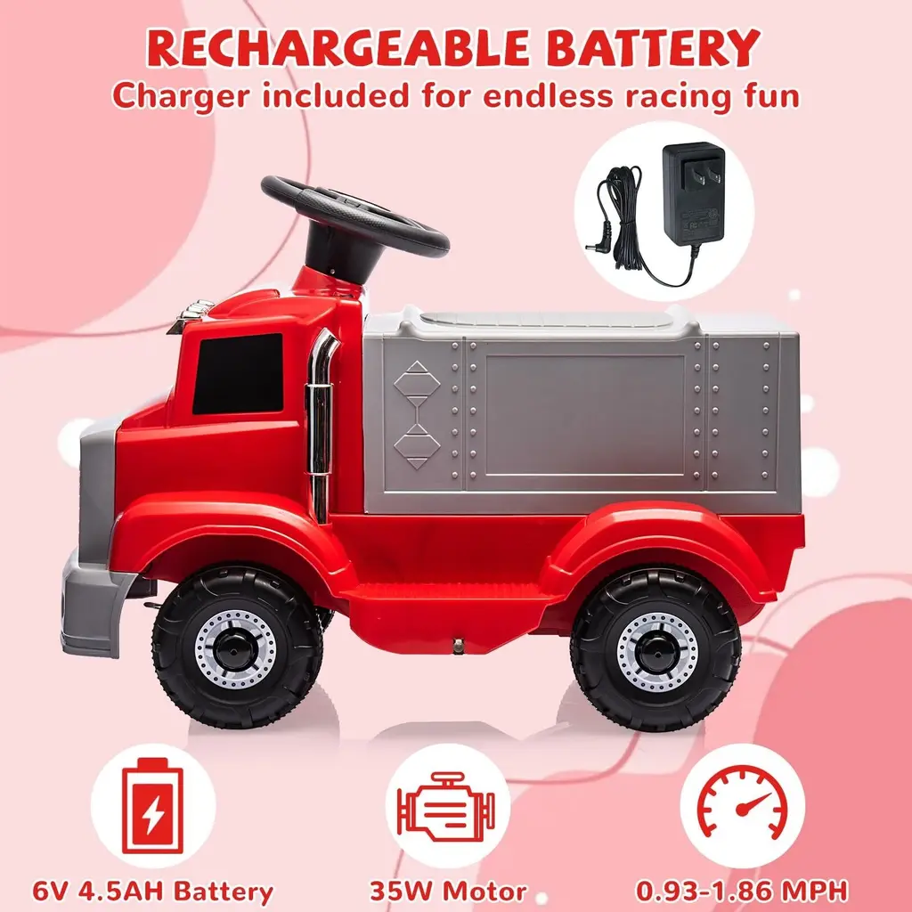 FUN DRIVING EXPERIENCE: This fun kids ride on truck features two bright headlights, five LED lights, and music along with a variety of sounds and music at the press of a button for a fun and safe riding experience BUILT IN HIDDEN STORAGE: This kids cars to drive features a spacious storage area beneath the seat that mimics a truck compartment. Perfect for stashing snacks, toys, books, and crayons, it gives kids their very own little secret hideout SAFE TO DRIVE: This kids ride on toy features an anti-tilt device and rounded corners for added safety. Plus, it is ASTM and CPSIA certified, giving you peace of mind while your little one rides! Dimensions: 26.18"L x 14.56"W x 18.11"H. Weight capacity: 55 lbs. EASY TO USE: Powered by 6V 4.5AH battery and 35W motor, this kids electric car can cruise at a steady speed of 1.86 mph on various terrains. With a simple one-touch start button, flexible steering wheel, and accelerator pedal, your little adventurer can easily take charge and embark on a thrilling journey PERFECT GIFT FOR TODDLERS: The intuitive forward, reverse, and stop buttons make it a breeze for your child to customize their ride, all while enhancing their hand-eye coordination.This 6v ride on toys for toddlers is the perfect gift for holidays, Christmas, Thanksgiving, New Year, and any special occasion