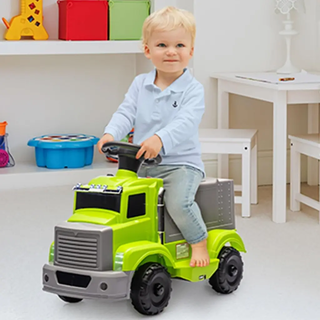 INTERACTIVE KIDS' CAR: This delightful electric vehicle for children features two shining headlights, five LED lights, and an array of sounds and music that can be triggered with a simple button press, ensuring a fun and safe riding experience 2-IN-1 DESIGN: This toddler car comes with two thrilling driving modes—electric and foot-operated! With a 6V 4.5AH battery and a 35W motor, it smoothly cruises at a consistent speed of 1.86 mph across different surfaces. Your child can embark on their own adventures while enhancing their motor skills—let the excitement start AMPLE STORAGE SPACE: This electric car for toddlers features a roomy storage compartment under the seat that resembles a truck bed. It's the perfect place for kids to stash snacks, toys, books, and crayons, creating their very own secret hideout SAFELY DESIGNED FOR KIDS: This ride-on toy features an anti-tilt mechanism and rounded corners for enhanced safety. It's also ASTM and CPSIA certified, ensuring you can relax while your little one has fun riding! Dimensions: 26.18"L x 14.56"W x 18.11"H. Weight capacity: 55 lbs. USER-FRIENDLY: With a one-touch start button, flexible steering wheel, and accelerator pedal, your little adventurer can easily take control and start their fun ride! The simple forward, reverse, and stop buttons help improve hand-eye coordination. This toddler toy makes a great gift for any holiday or special occasion