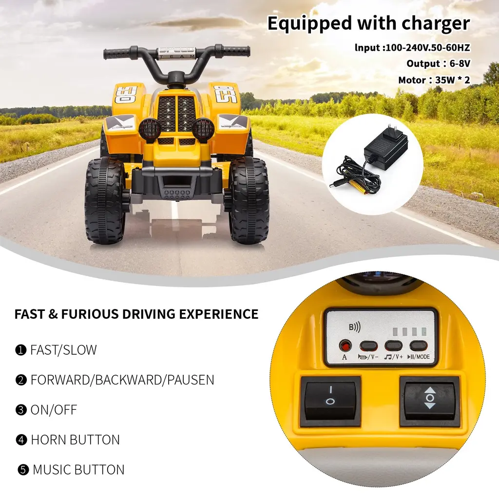 6V Kids Ride On Electric Atv, Ride Car With Led Headlights - Yellow