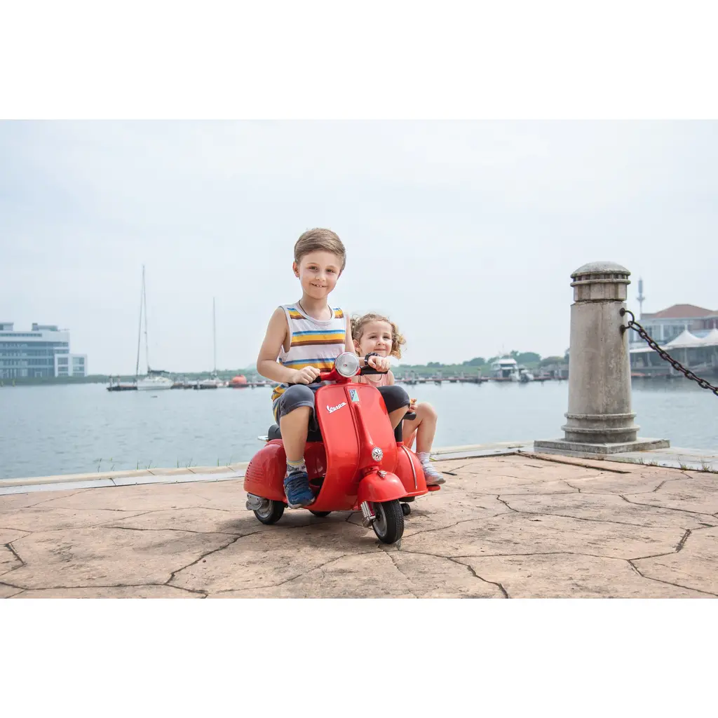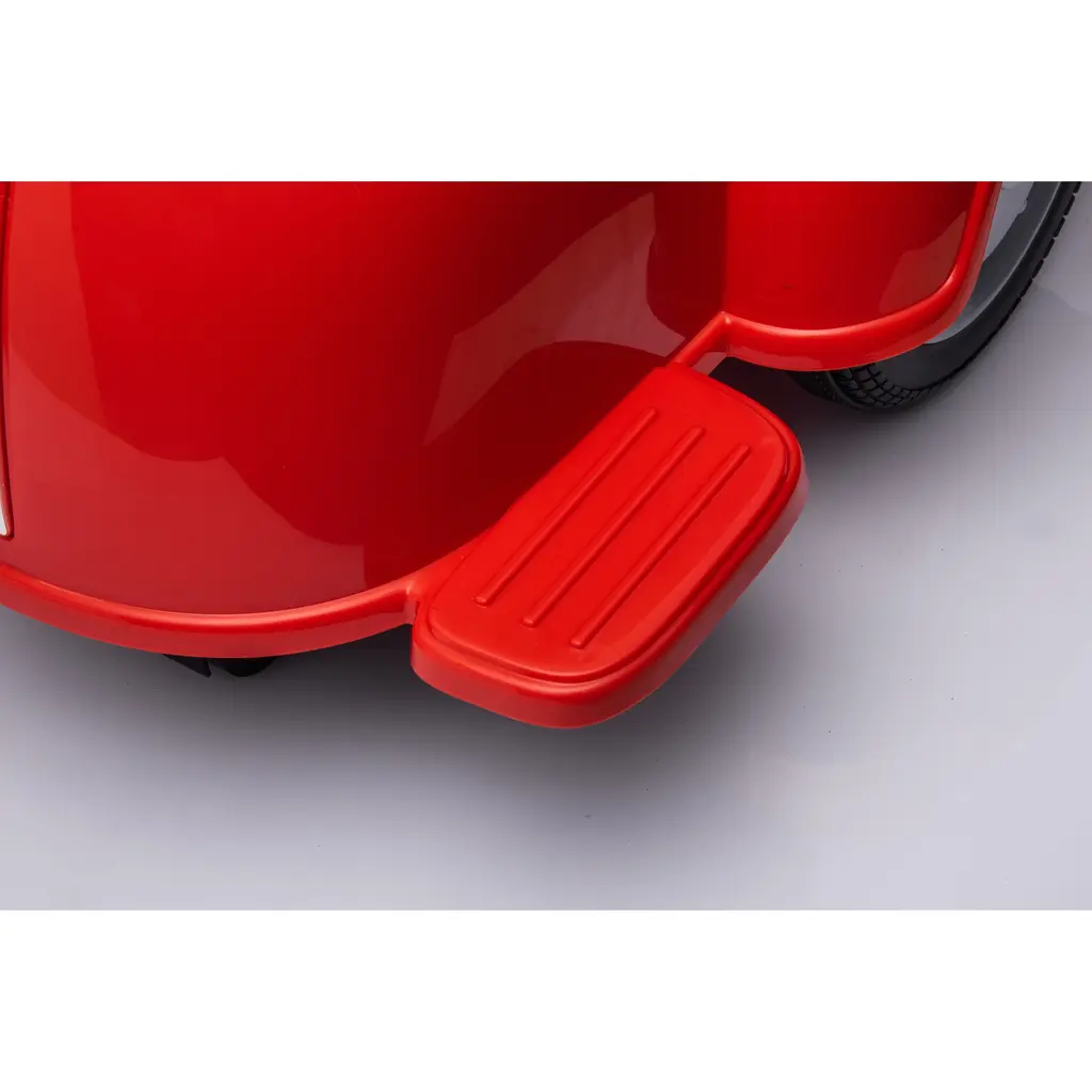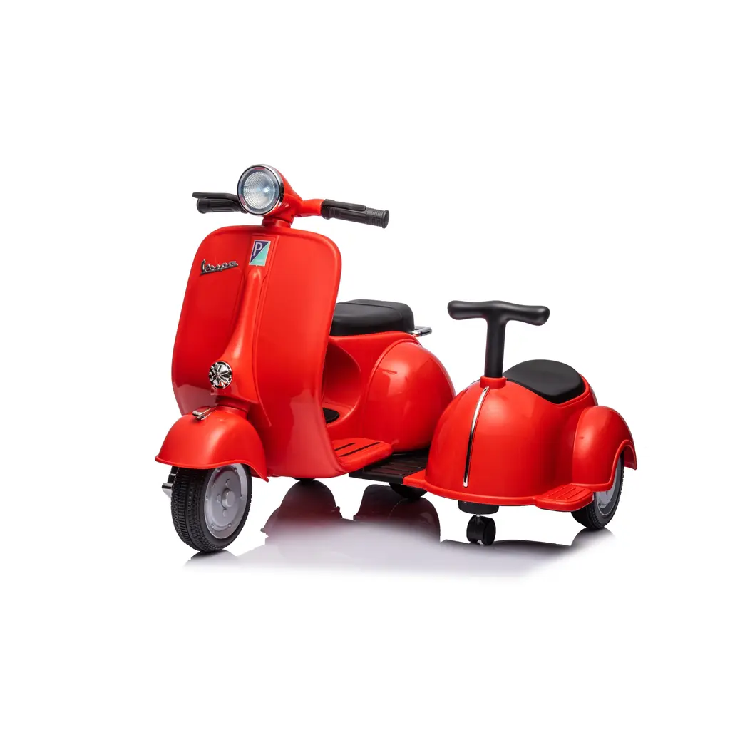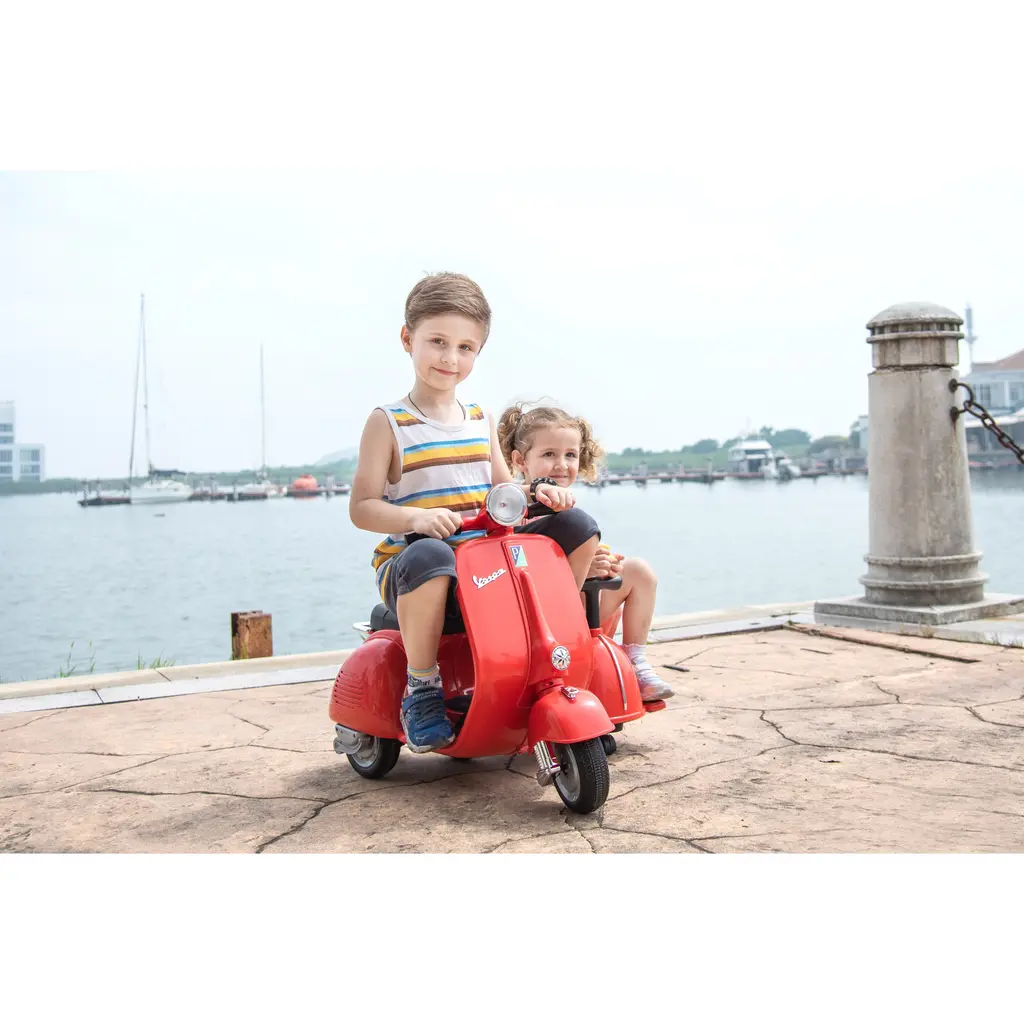 6V Licensed Vespa Scooter Motorcycle With Sidecar For Kids, Dual Seats, Storage, Headlights, And Music 鈥?for Ages 3+ - Red - Red