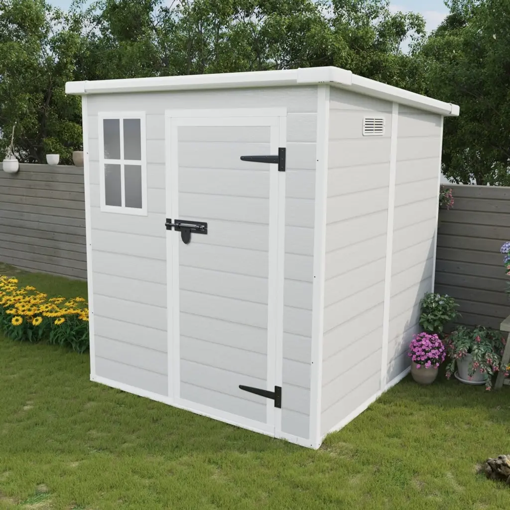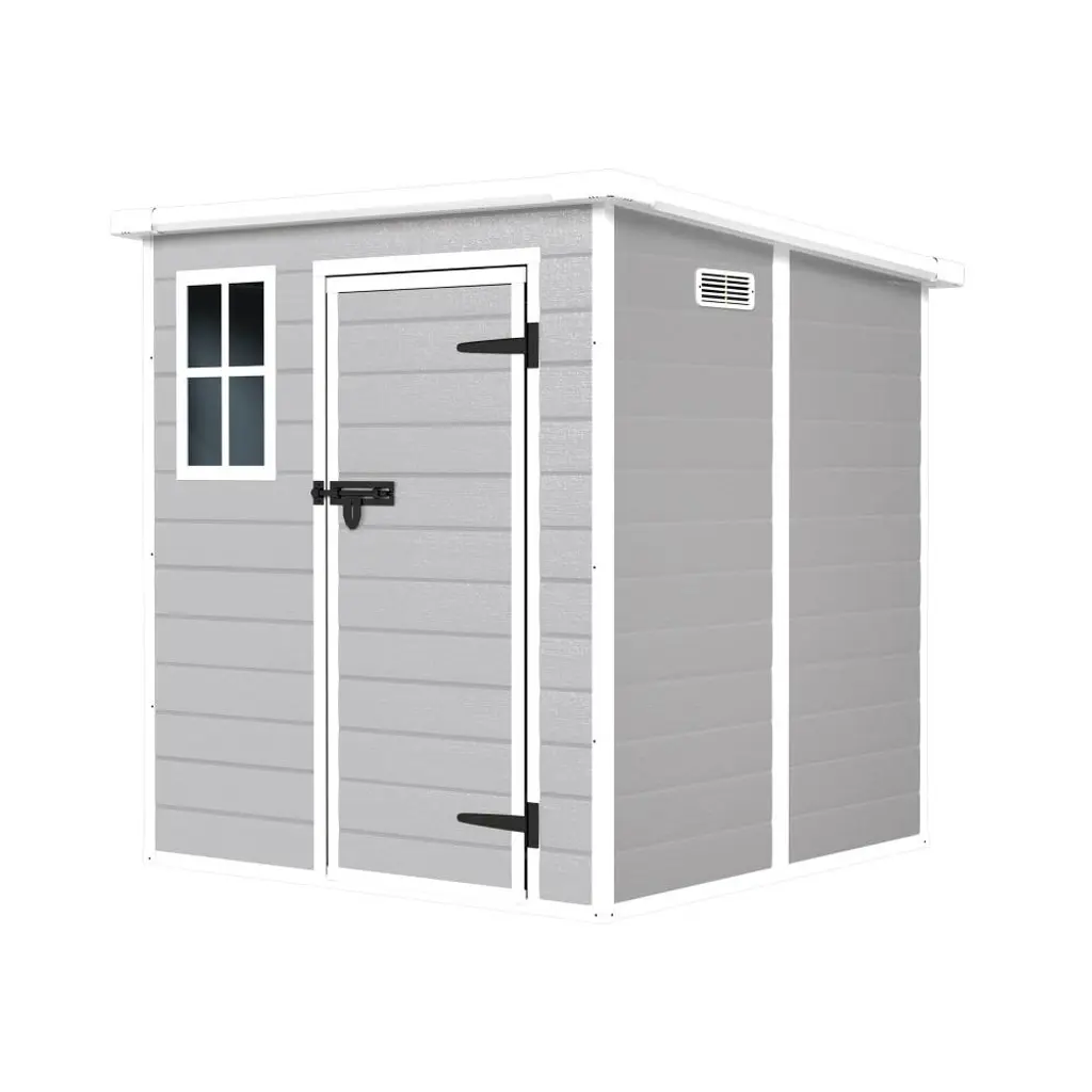 6X6 Ft Waterproof Resin Outdoor Storage Shed With Floor & Lockable Doors And Vents - Grey