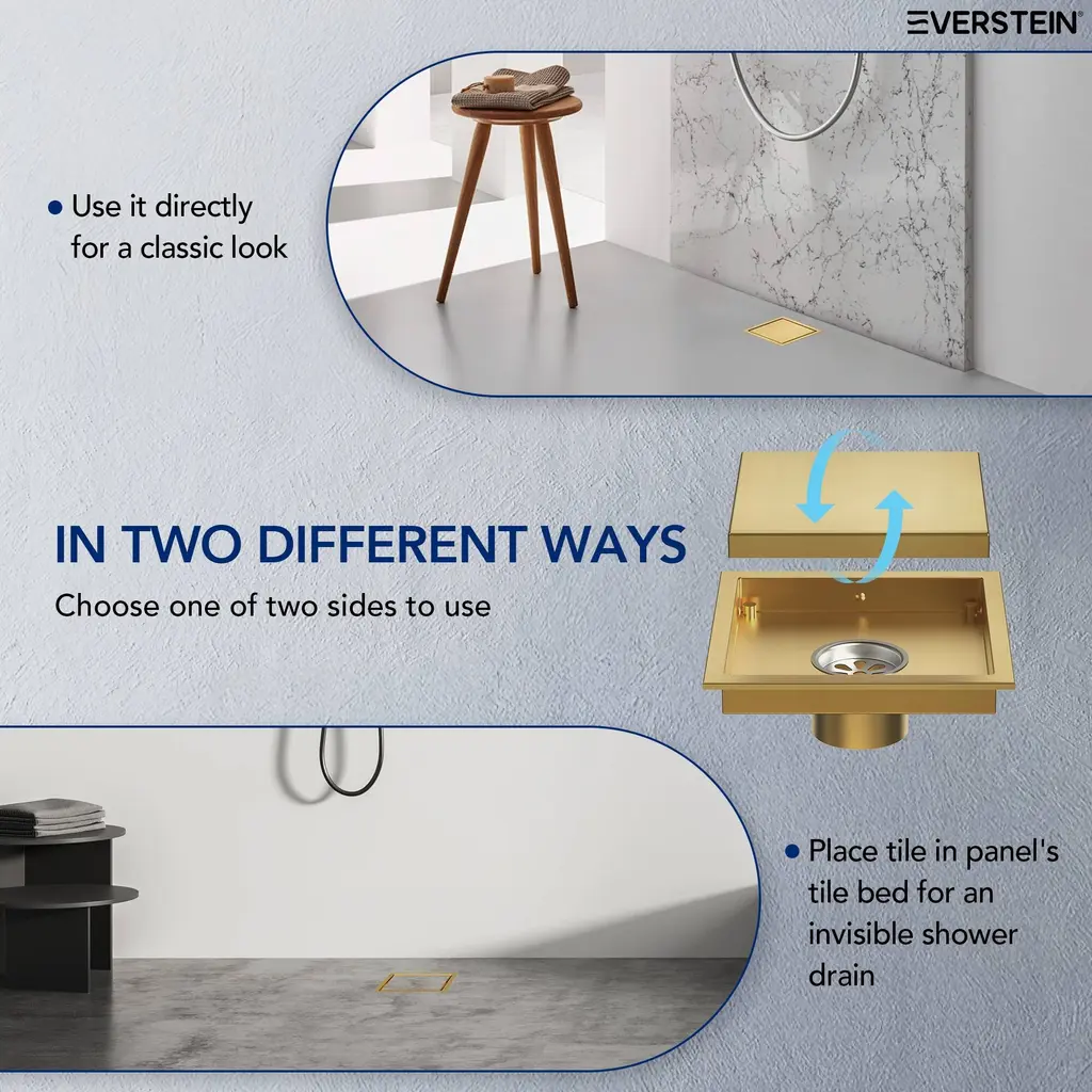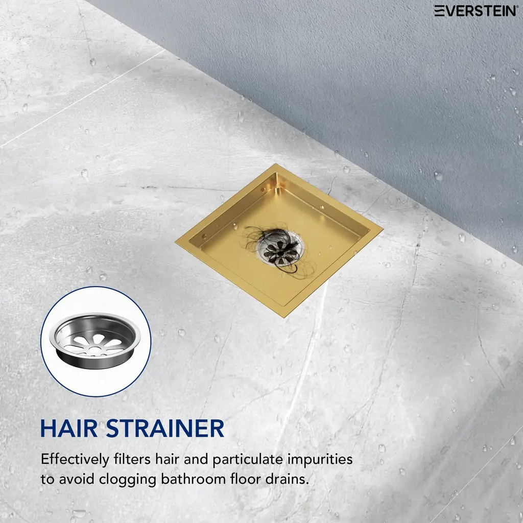 This square shower drain is designed to deliver efficient water drainage with added features for convenience and durability. Equipped with a built-in hair strainer, it effectively captures debris to prevent clogging, ensuring smooth water flow and reducing maintenance efforts. The diameter of outlet is 2", high displacement with an average of 60 l/min. Ideal for use in bathrooms, showers, kitchens, swimming pools, balconies, garages, basements, toilets, and even outdoor areas, the EVERSTEIN floor drain ensures a smooth and hygienic drainage system for your home or commercial space. Feature:After-Sales Warranty: EVERSTEIN provide a lifetime warranty that covers all issues not resulting from human error or accidental damage, with customer service support, ensuring a seamless and worry-free experience from product selection to installation.