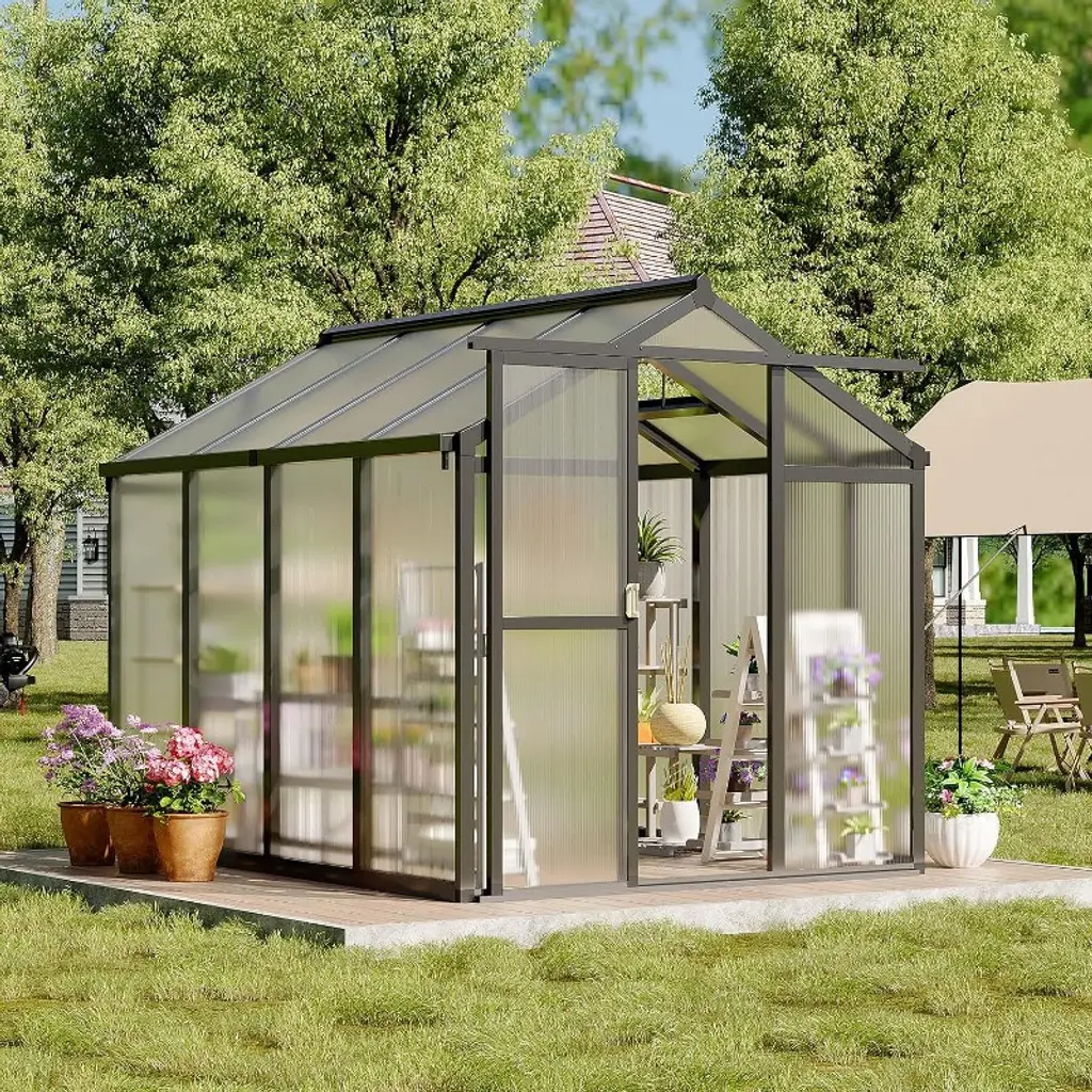 6X8ft Sturdy Polycarbonate Greenhouse With Aluminum Frame - Adjustable Roof Vent, Sliding Door & Uv Protection For Backyard Gardening