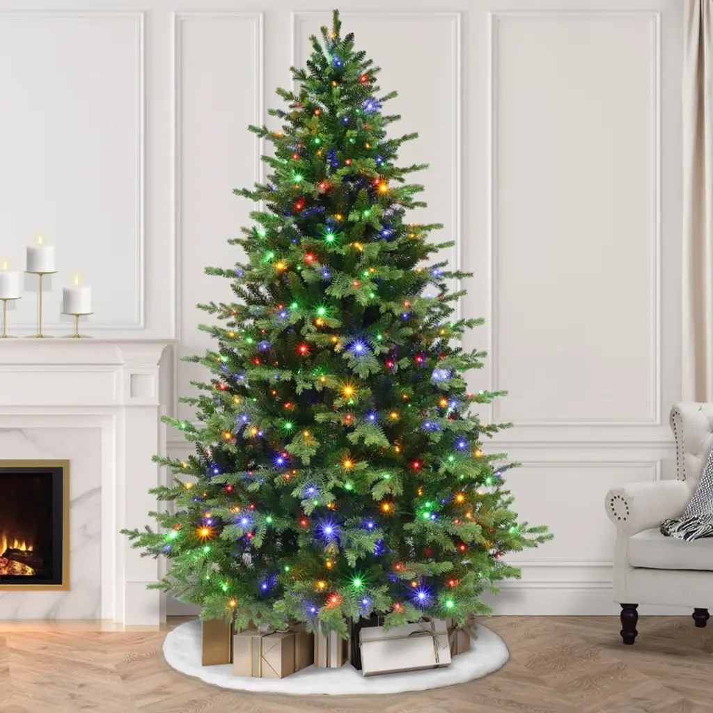 7.5' Artificial Fir Christmas Tree With Color & Clear Lights
