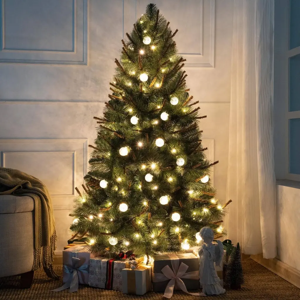 7.5' Artificial Fir Christmas Tree With Color & Clear Lights