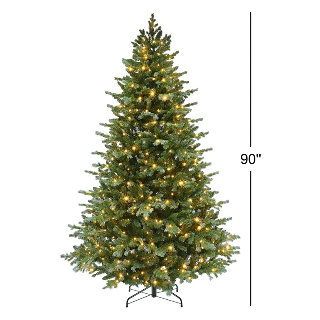 Bring the holiday cheer. This artificial fir Christmas tree features a full, regular shape and comes pre-lit with 500 steady lights for a dazzling display. The metal stand is included for easy setup, making it perfect for indoor use. Get ready to deck the halls!