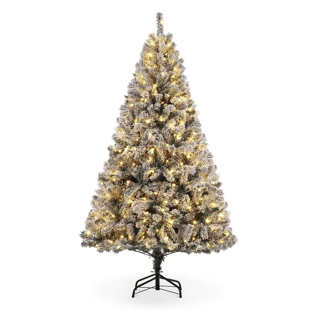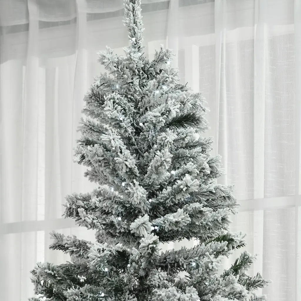 7.5' Flocked Artificial Christmas Tree With Cold White Led Lights - N/a - Green