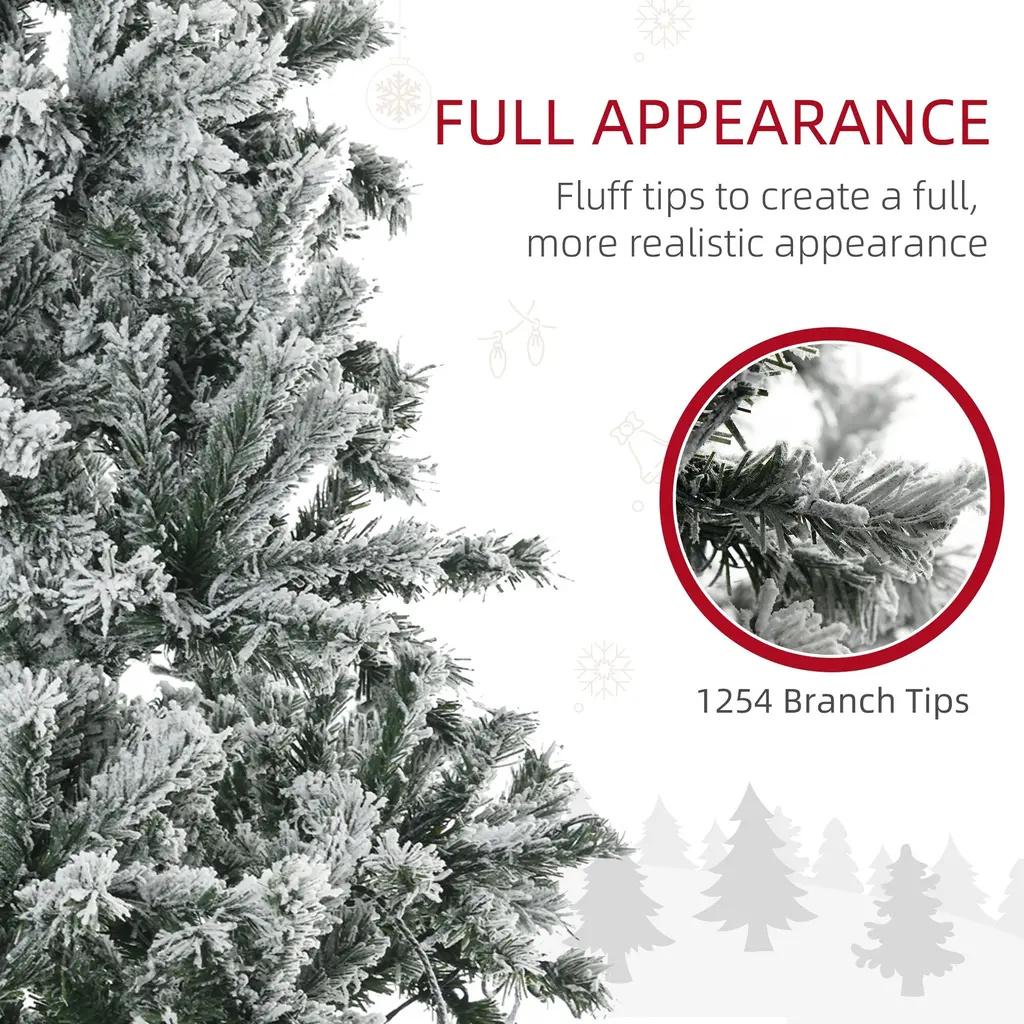 7.5' Flocked Christmas Tree With Cold White Led Lights - Green - 7.5 Foot