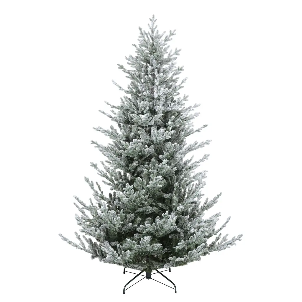Our Little River Frasier Fir artificial Christmas tree is one of our most realistic trees. It comes with perfectly molded PE branch tips that are mixed with PVC branches creating fullness. The upward-sloping branches are lightly flocked mimicking a real Frasier Fir as it appears in nature after a light snowfall. Perfect to leave as-is or add some lights and ornaments for a little flair. Product Features: Unlit. 3217 branch tips. 1" wide tips. 5-piece easy assembly (including stand). Medium profile tree. Hinged branch construction. For indoor use only. Comes with a green metal tree stand. Dimensions: 7.5' high (from the base of the stand to the top of the tree). 61" base diameter (at the widest point). Material(s): PE/PVC/metal. Note: Branches are compressed for shipment and need to be fluffed out upon arrival to look like the photo.