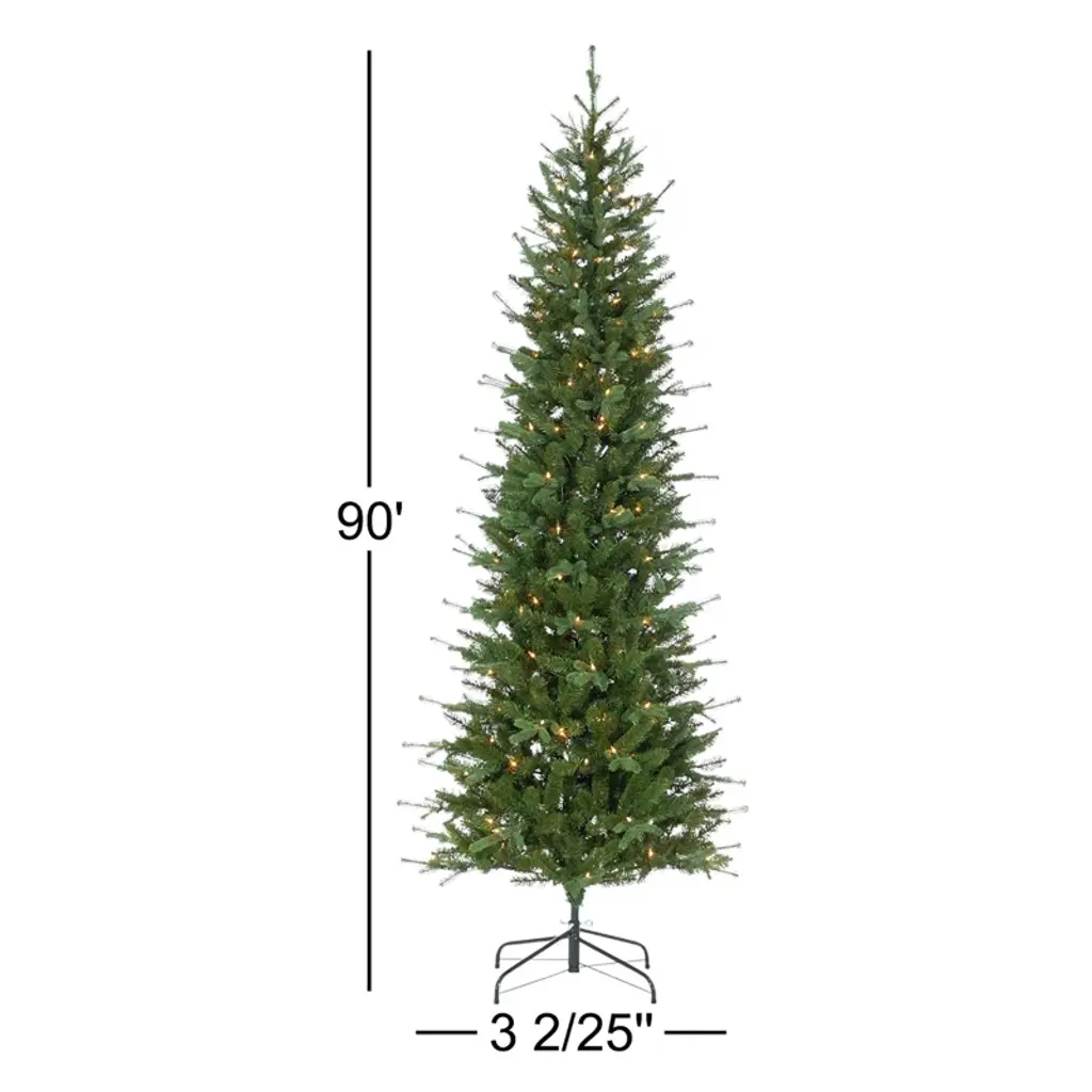 Get in the holiday spirit with this slender artificial Christmas tree. Its PVC & PE blend tips create a realistic look, and the clear/white lights add a warm glow. With 150 stay-lit bulbs and a sturdy stand included, this tree is ready to bring joy to your indoor space.