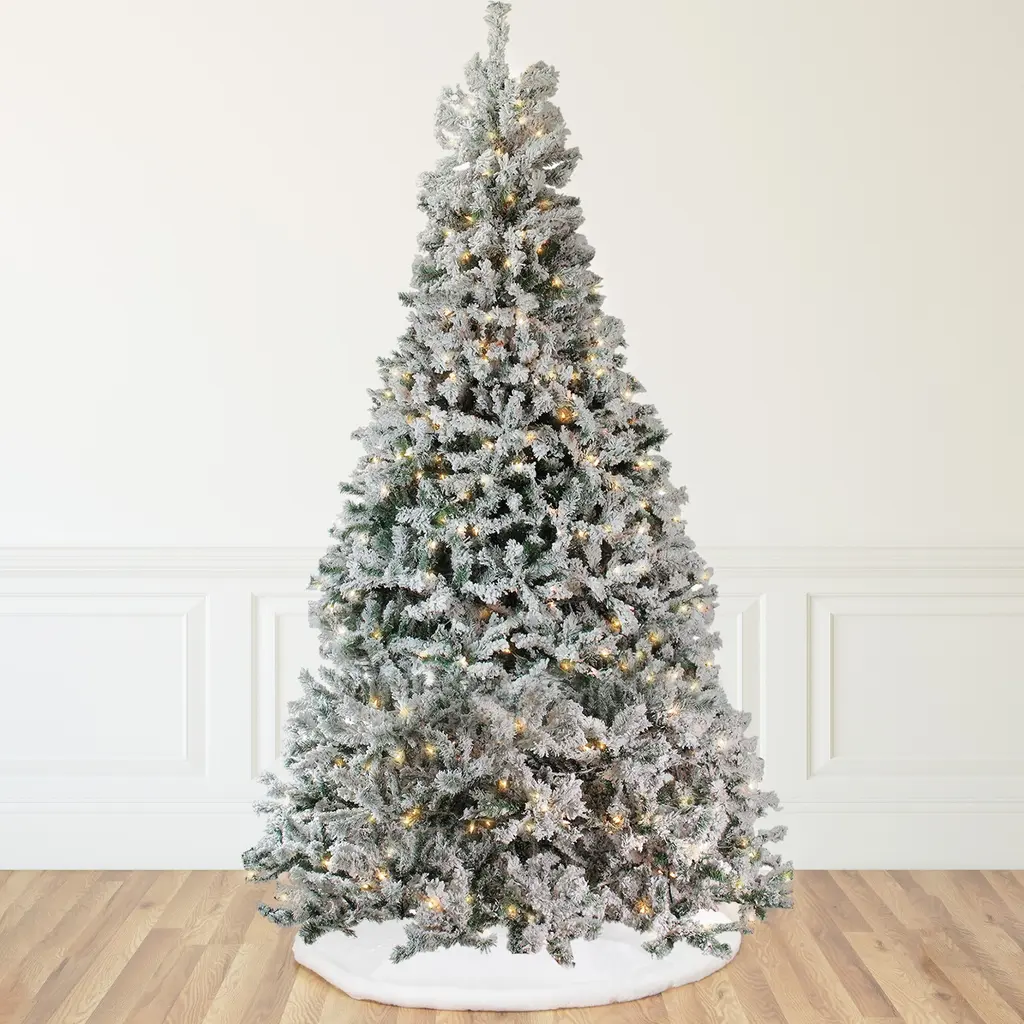 You know that Christmas tree hunting can be dreading and tiresome. So why not get this heavily flocked pine artificial tree? Easily movable this pre-lit Christmas tree reduces your work. Dusted with frosting and lit with clear lights the highlight will make your tree shine like a star. Product Features: Pre-lit with 600 clear lights. Bulb size: mini. 1154 round tips. Flame resistant. Additional Product Features: Light sets on tree are UL certified and approved for indoor or outdoor use however the tree itself is recommended for indoor use only. If one bulb burns out the rest will stay lit. Lights are equipped with lamp lock feature which makes them replaceable interchangeable and keep them from falling out. 4-piece easy assembly (including stand). Comes with replacement bulbs and spare fuses. Comes with a free metal tree stand. Dimensions: 7.5' high (from the base of stand to the top of the tree). 53" base diameter (at the widest point). Material(s): PVC/metal/wire/glass. Note: Branches are compressed for shipment and need to be fluffed out upon arrival to look like the photo.