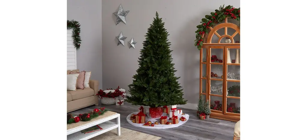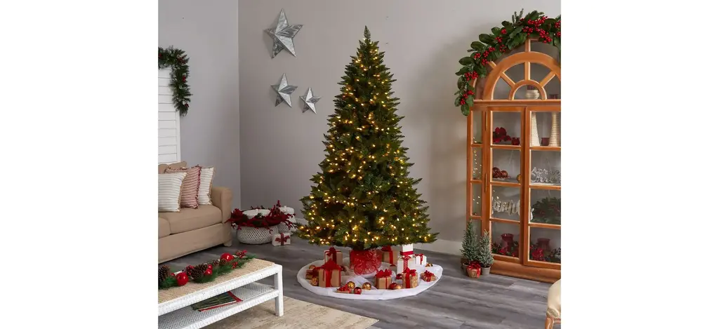 Light up your home this holiday season with the help of the 7.5' Pre-Lit Vermont Spruce Artificial Tree. Easy to build and entirely maintenance-free, it boasts a traditional silhouette of seasonal evergreens.