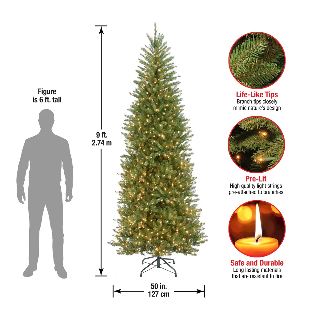 Product Features:[NATURAL LOOK AND FEEL]:Our ultra-realistic pre-lit branches make this tree look extremely lifelike.With 1420 branch tips, you will be sure this full bodied tree looks real from near and far. [SIMPLE SETUP AND STORAGE]:Convenient hinged branches and pre-strung lights allow this fir tree for easy setup and disassembly[HIGH QUALITY MATERIAL]:The PVC material is non-flammable and non-allergenic, it is safe to replace the real thing. [STURDY METAL STAND]:Durable, folding steel base can prevent your tree from breakage and provide stability to keep your tree standing all season. [EASY ASSEMBLY AND STORAGE]: Disassembles into 3 sections and foldable metal stand allow for easy assembling, dismantling, and storage. Description: