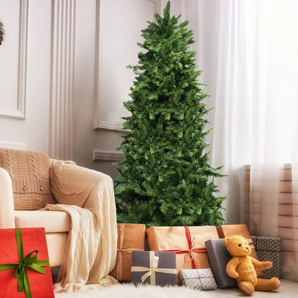 Features: 1. More tips - Branches are elaborated with to show the vivid full-blown pine tree 2. More realistic - The blades of Christmas tree are made from high quality PVC material, it shows more real and more nature 3. Sturdy and durability - Metal tree base with screws provides stability to keep your tree standing more stable 4. Easy setup - To finish the assembly of this tree it requires only 3 steps, after putting branches and metal stand together, all the tree requires you to do is straighten out the branches 5. Warranty 100% - We offer you prime satisfaction customer service to guarantee to let you buy with confidenceSpecifications: 1. Color: chartreuse 2. Product Height: 7.5ft (2.25m) 3. Product Details: 1346tip