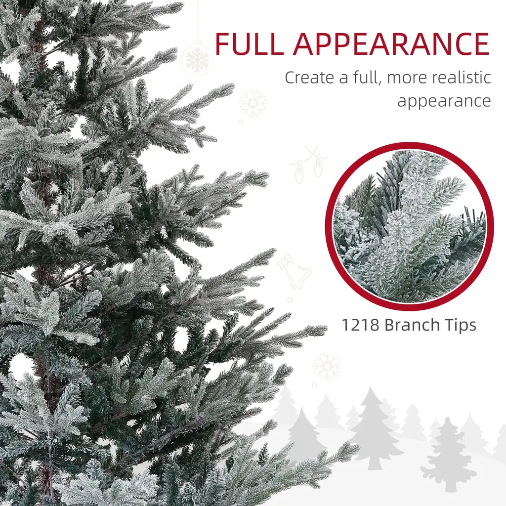 7.5ft Nordic Pine Artificial Christmas Tree With 1218 Snow Flocked Tips, Foldable Metal Stand, Easy Assembly - Green