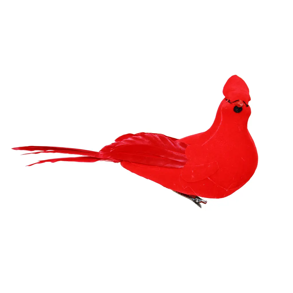 Elevate your décor with this charming 7" Cardinal. Crafted from real feathers, this delightful cardinal adds a pop of color and natural beauty to any arrangement. Its metal clip at the bottom makes it easy to attach to wreaths, garlands, or floral displays, offering versatile decoration options. Whether used to bring a festive touch to holiday décor or to add a splash of color to everyday displays, this lifelike cardinal is sure to enchant with its vibrant hues and lifelike texture.