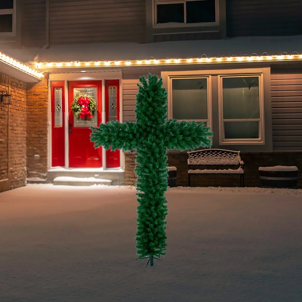 7' Artificial Pine Christmas Cross, Unlit - Green - 7 Foot
