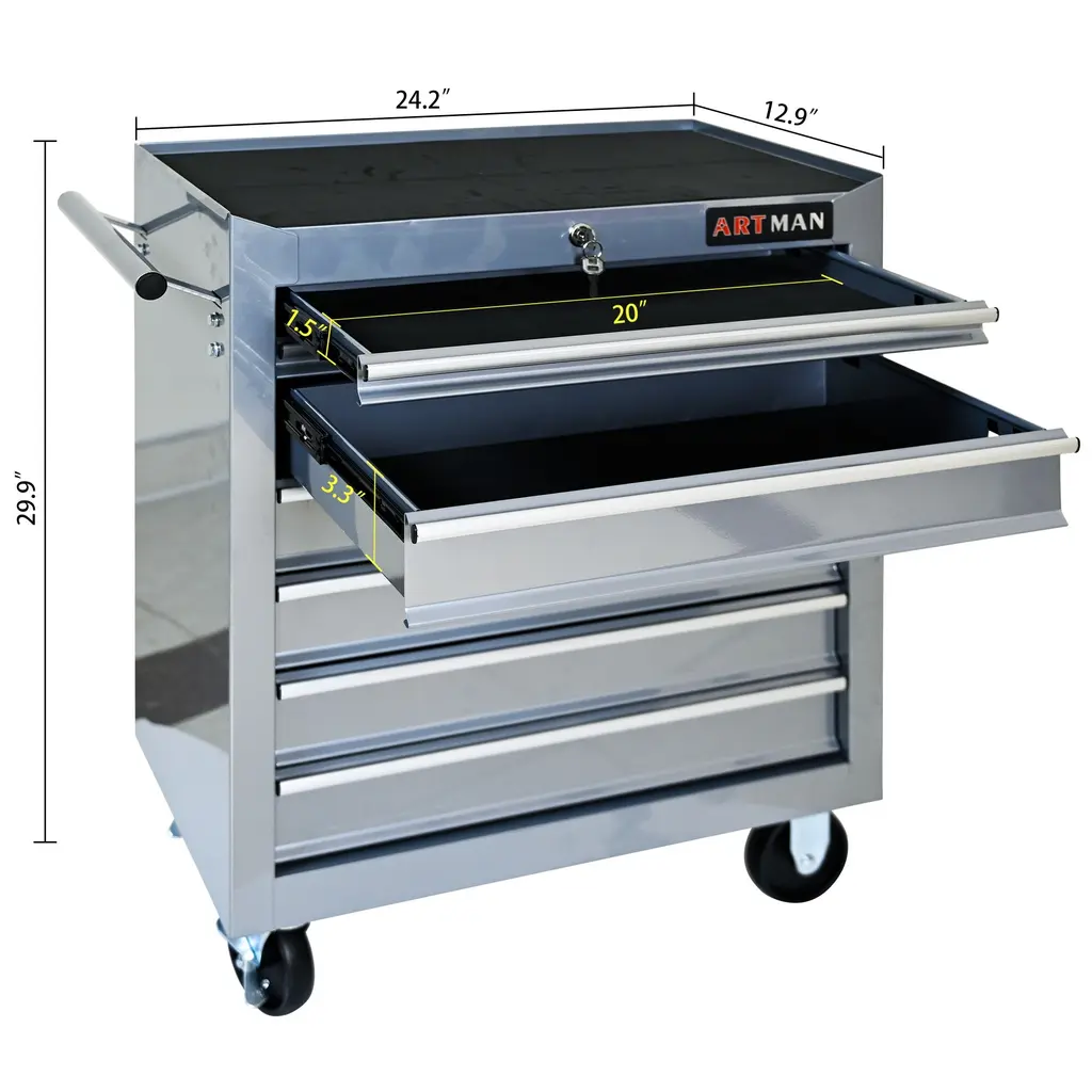 7-Drawers Multifunctional Tool Cart With Wheels - Silver
