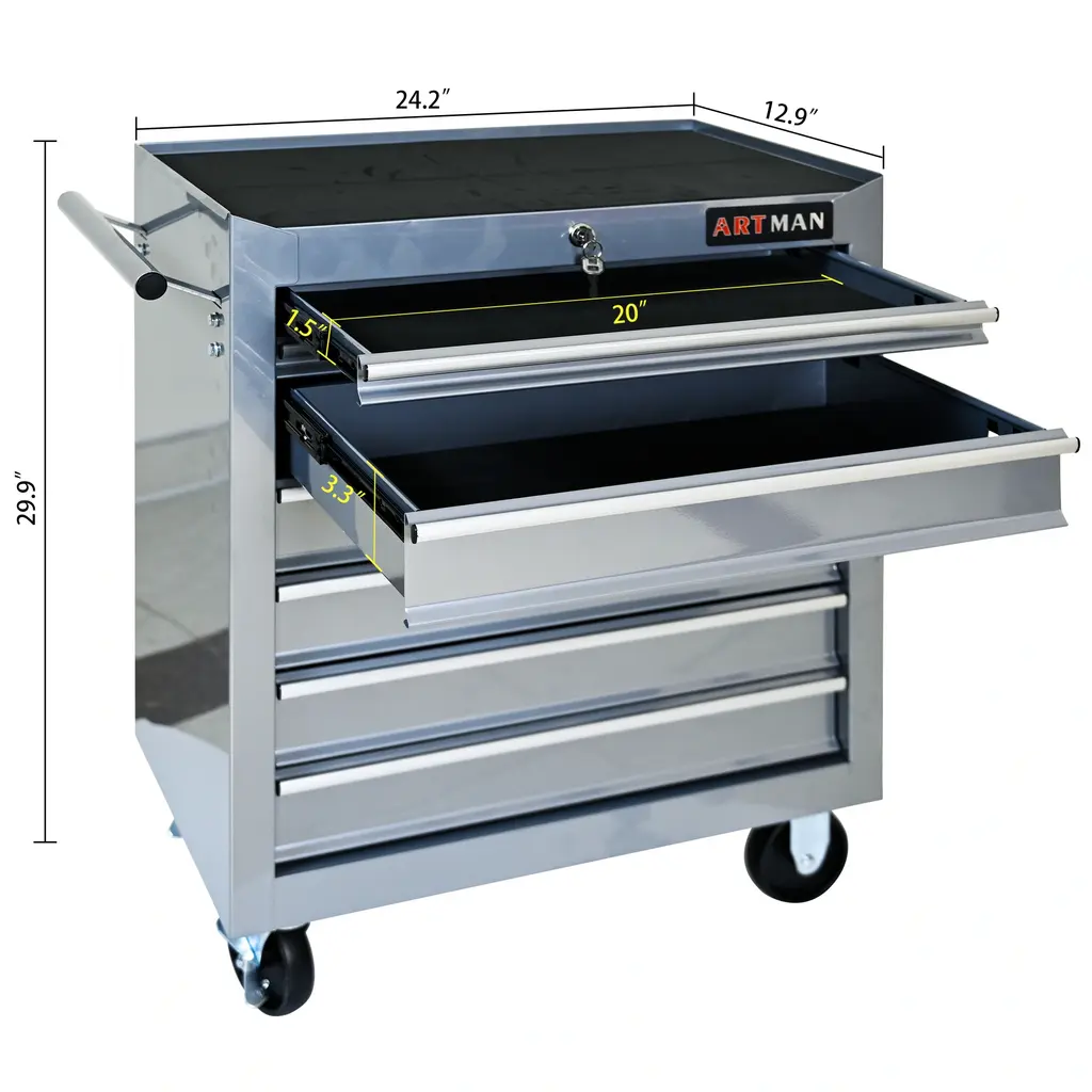 7 Drawers Multifunctional Tool Cart With Wheels - Silver