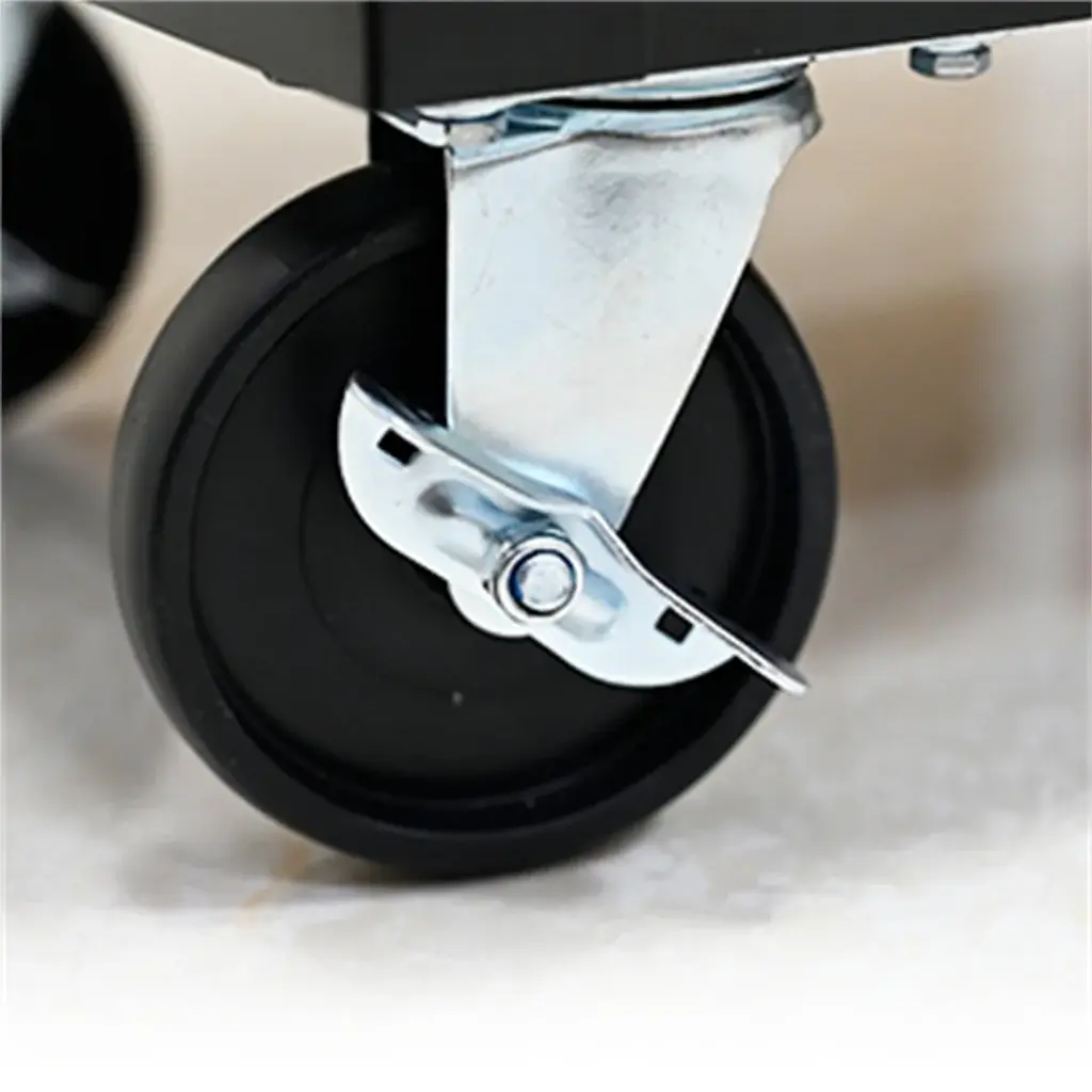 A thin piece of EVABetter Protection Tool Mesa, so that it is not easy to use tool tool scratches the surface of the tool car.Ball Bearing Slide15KG loading capacity ball bearing slide.With Key LockingProtecting the tools and items stored inside.2PCS with Brake and 2PCS without BrakeWith swivel casters could maneuver easily around work area. The wheels have locking mechanisms to prevent the tool cabinet from moving around on its own while in use.Product Information