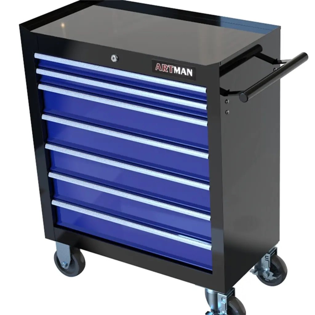 7 Drawers Workshop Tool Trolley With Wheels And Key Locking - Blue