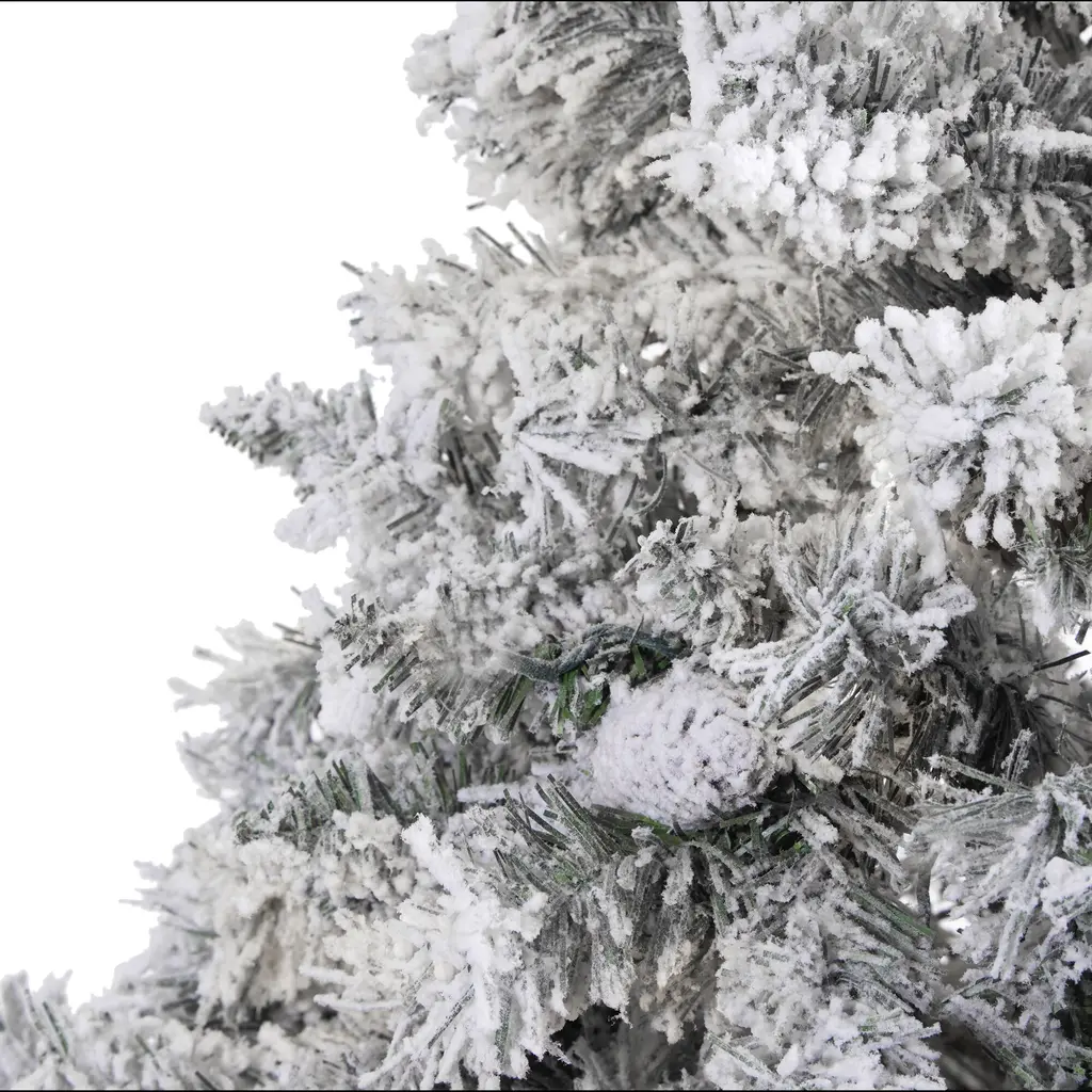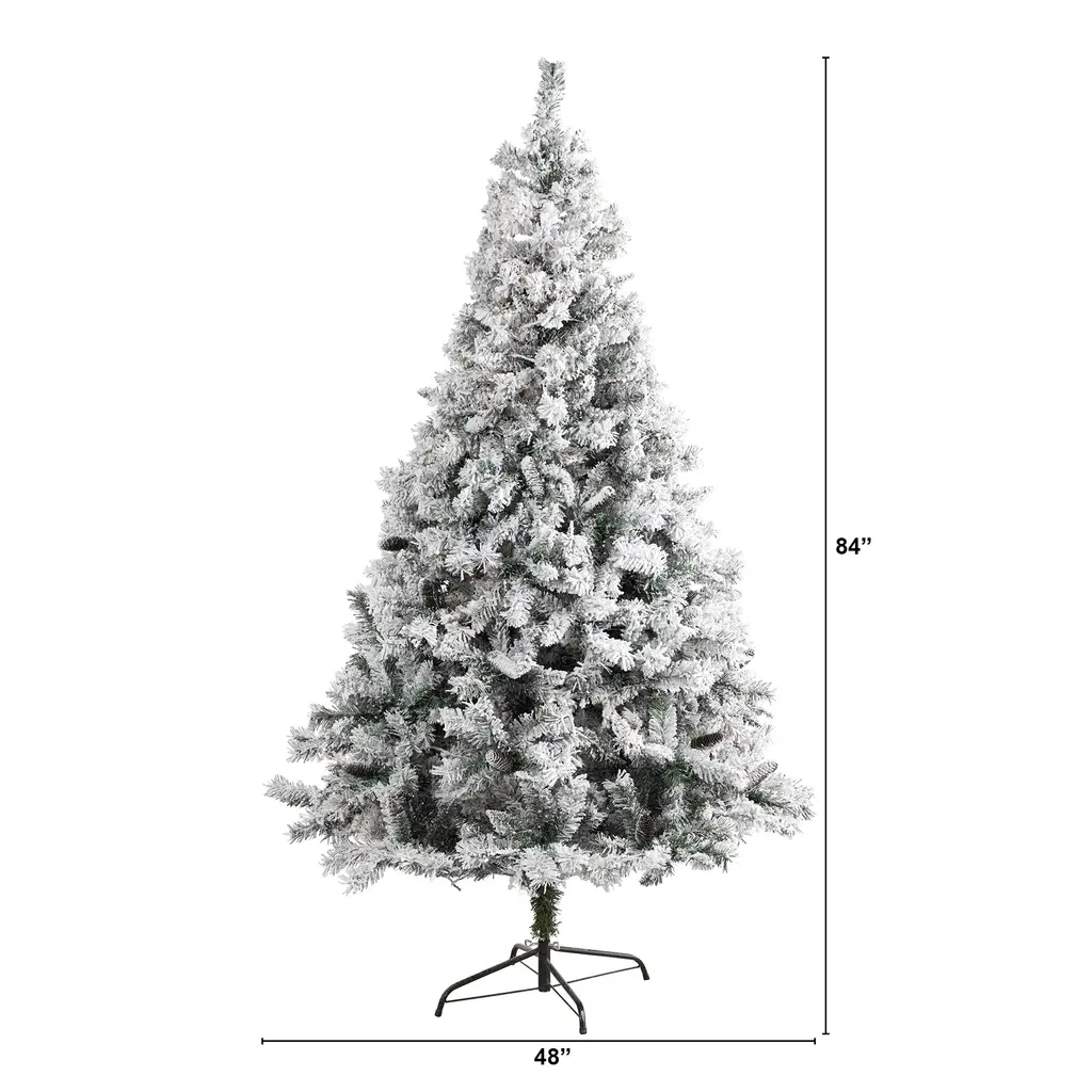 Complete a traditional Christmas setting this holiday with the help of this Flocked White River Mountain Pine Artificial Christmas Tree. Easy to set-up and entirely maintenance-free, this winter-inspired Christmas tree boasts a robust collection of realistic looking foliage consisting of 868 easy-to-bend branches for showcasing holiday accents and accented throughout with faux pinecones that look incredibly realistic. Finished with a light frosting of faux snow, it's guaranteed to create a picturesque Christmas wherever displayed. Carefully stabilized on an accompanying stand, this handsome 7' tall frosted artificial Christmas tree will undoubtedly transform any home or office into a joyous holiday setting for years to come.