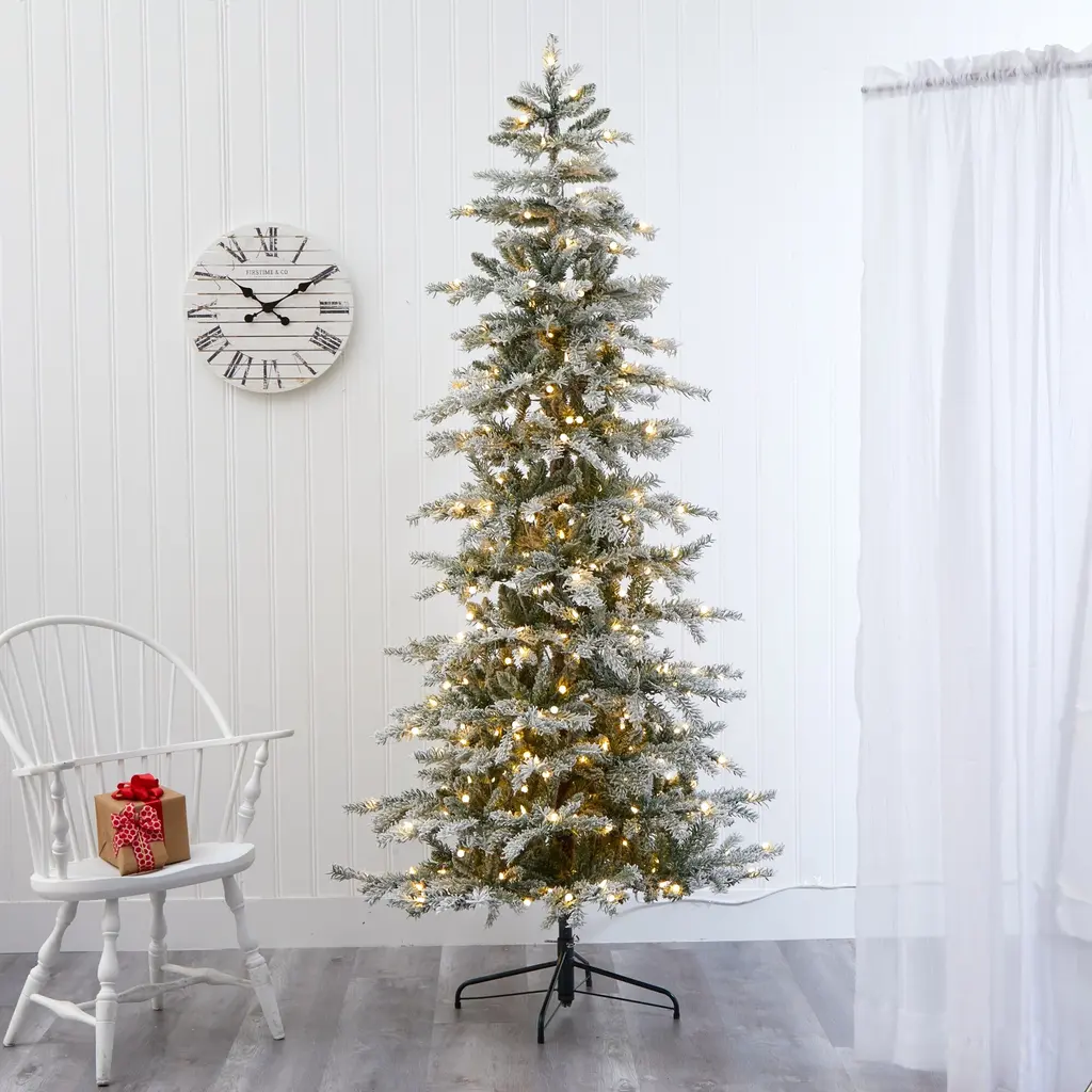 Create your own winter wonderland this holiday season with the help of this frosted tip British Columbia Mountain pine artificial Christmas tree. Easy and stress-free, this artificial Christmas tree boasts a robust silhouette of mountain pine foliage made up of countless easy-to-bend branches, perfect for showcasing all your favorite holiday ornaments, accented throughout with pinecones, and finished with frosted tips to create hints of a winter setting. Arriving pre-strung with 400 clear lights to eliminate tangles and carefully stabilized on a metal stand, this handsome 7' tall frosted artificial Christmas tree will not only make decorating a breeze but ensure your home remains picture perfect all season long.