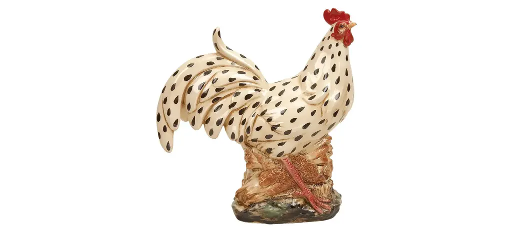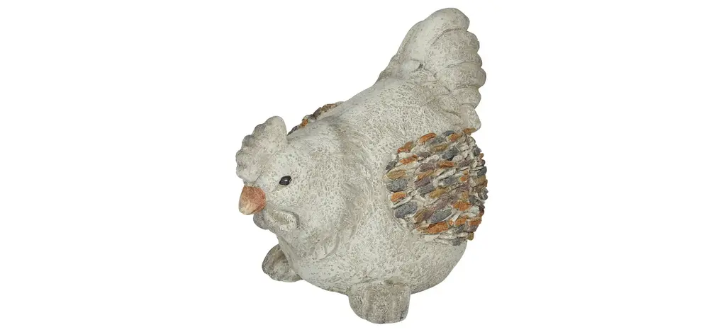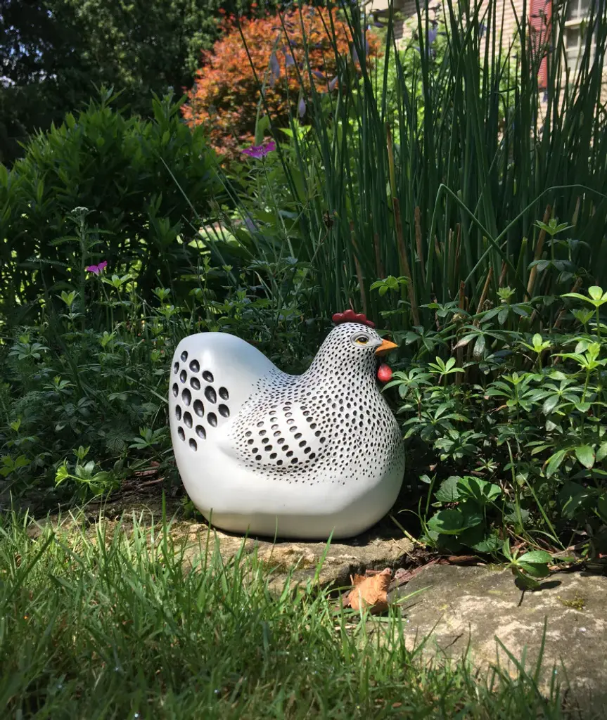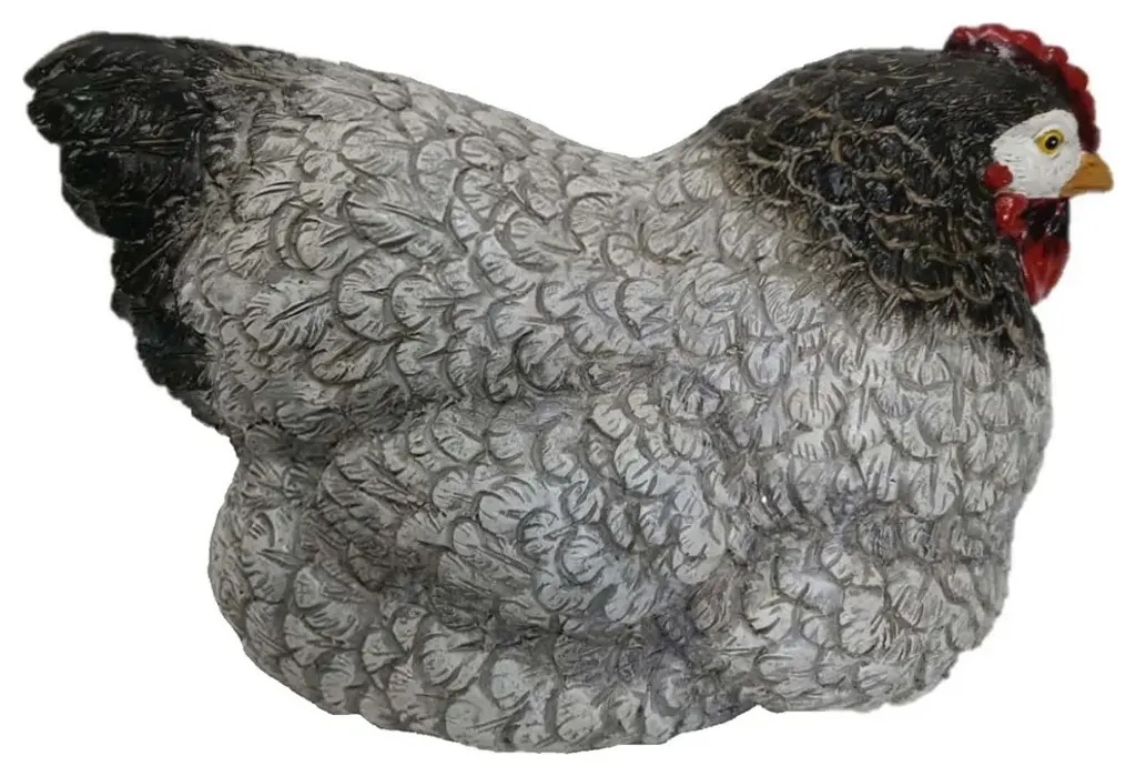 If you''ve ever been around chickens, you know how entertaining it is to just sit in the shade and watch "chicken TV" on a warm summer day. Then toss them a slice of watermelon and watch the feeding frenzy. So much fun! This lovely black and white spotted chicken is doing her daily duty and taking a break from the mayhem to lay an egg. Made of long lasting resin and beautifully hand painted with exquisite detail, this 7" Lying Appenzeller Chicken is sure to provide many seasons of pleasure.