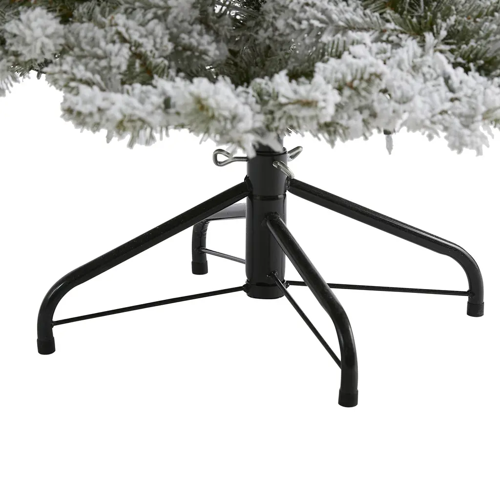 Create a winter wonderland in your home with this flocked West Virginia spruce artificial Christmas tree. With its fully flocked design and 1468 bendable branches, you can showcase your holiday ornaments in style. Pre-lit with LED lights and stabilized on a stand, this tree is the perfect addition to your winter inspired holiday decoration and will look picture perfect year after year. Product Features: Pre-lit with 400 clear LED lights Bulb type: LED Bulb size: mini lights 1468 tips Green lead cord Assembled in the USA Care instructions: wipe clean with a soft dry cloth Additional Product Features: LED lights use 90% less energy Flocked with faux snow for a picturesque Christmas Bulbs stay cool to the touch Light sets on trees are UL certified and approved for indoor or outdoor use, however, the tree itself is recommended for indoor use only If one bulb burns out, the rest will stay lit 2-piece easy assembly (including stand) Comes with a FREE black metal tree stand Dimensions: 7' high (from the base of the stand to the top of the tree) 54” base diameter (at the widest point) Material(s): polyvinyl chloride/metal Note: