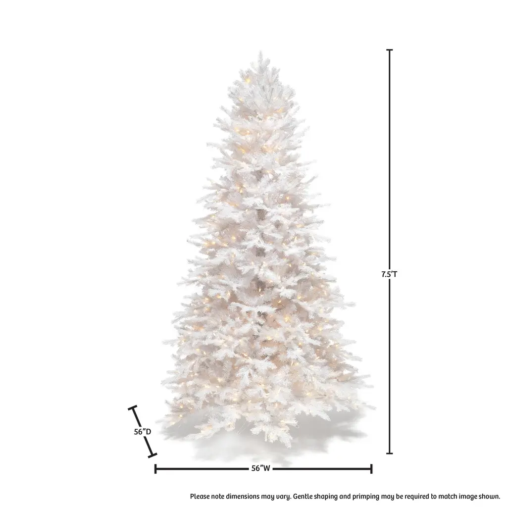 7’ Pre-Lit Flocked West Virginia Spruce Artificial Christmas Tree, Clear Led Lights - 7 Foot - White - 7 Foot