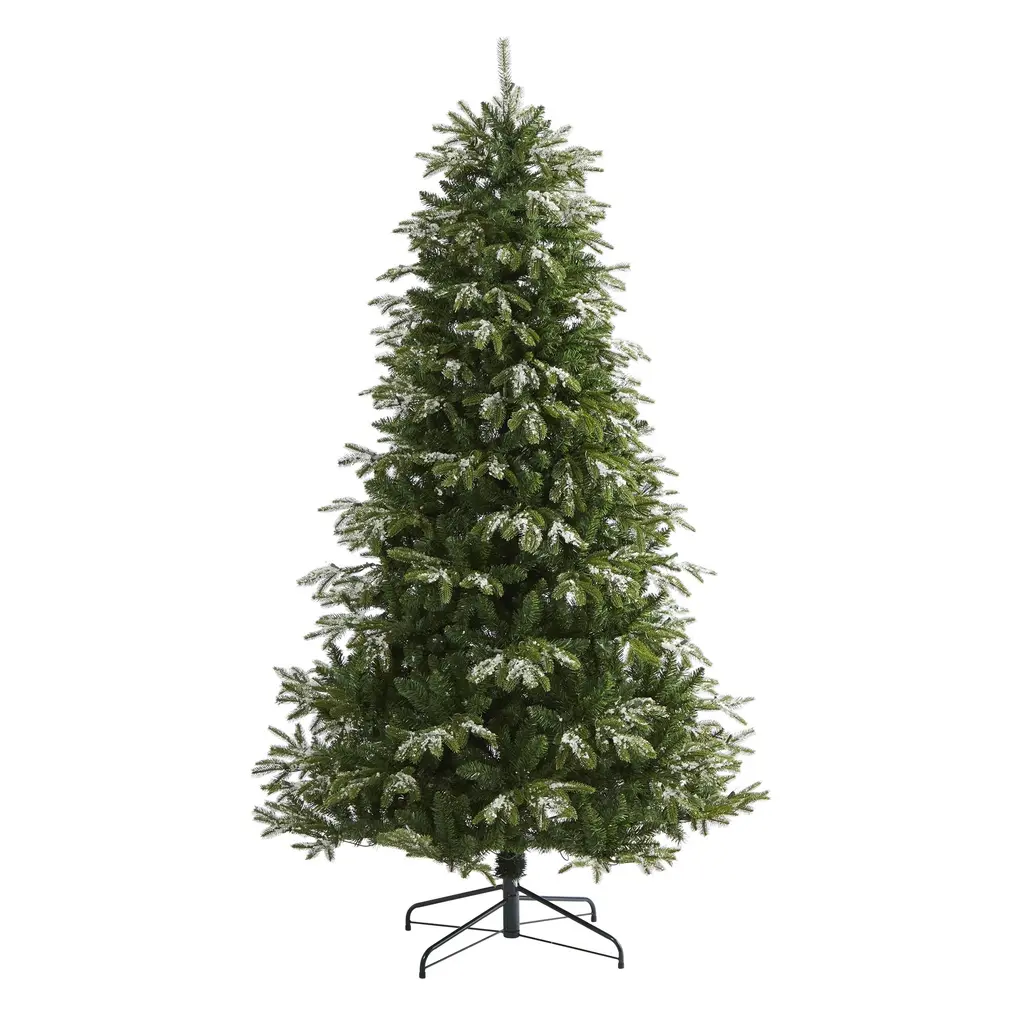 Embrace the magic of a winter wonderland with this snowed teton fir artificial Christmas tree. Featuring delicate layers of soft, bendable foliage and 1050 branches that provide ample space for your cherished ornaments, a gentle dusting of faux snow adds an enchanting touch. This tree comes pre-lit with LED lights, and a sturdy stand ensures effortless setup and lasting charm. This captivating, snow-kissed tree will transform your home into a festive haven for years to come. Product Features: Pre-lit with 500 clear LED lights Bulb size: mini lights Bulb type: LED 1050 tips Green lead cord Dusted with a layer of faux snow frosting Assembled in the USA Care instructions: wipe clean with a soft dry cloth Additional Product Features: LED lights use 90% less energy Bulbs stay cool to the touch Light sets on tree are UL certified and approved for indoor or outdoor use, however the tree itself is recommended for indoor use only 2-piece easy assembly (including stand) Comes with a FREE black metal tree stand Dimensions: 7’ high (from the base of the stand to the top of the tree) 45” base diameter (at the widest point) Material(s): polyvinyl chloride Note:Item will need to be reshaped when removed from the box