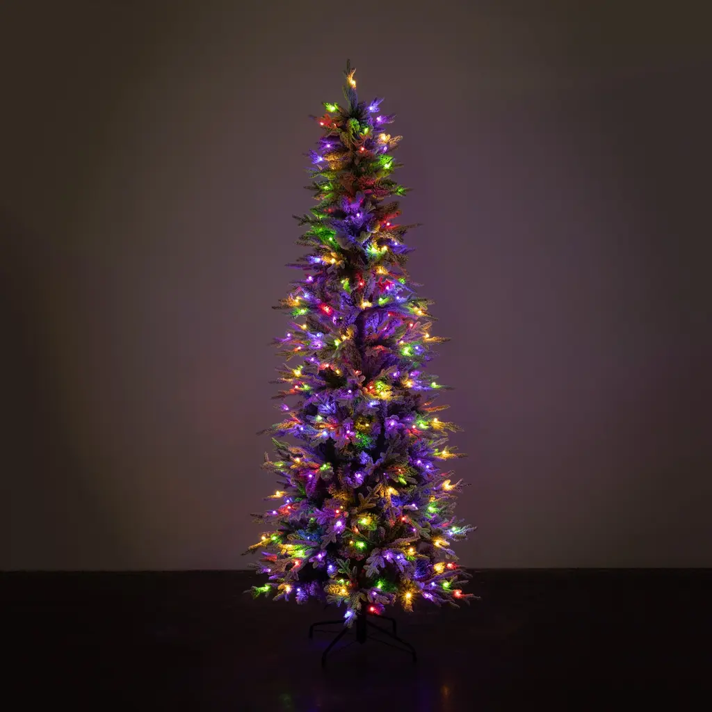 7' Sullivans Lit Slim Flocked Christmas Tree, Green - 29"l X 29"w X 7' 6"h - 9 Foot
