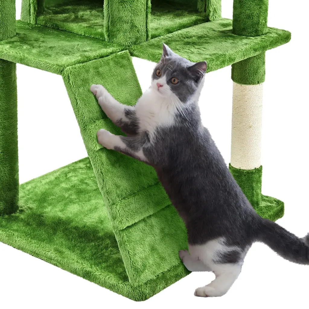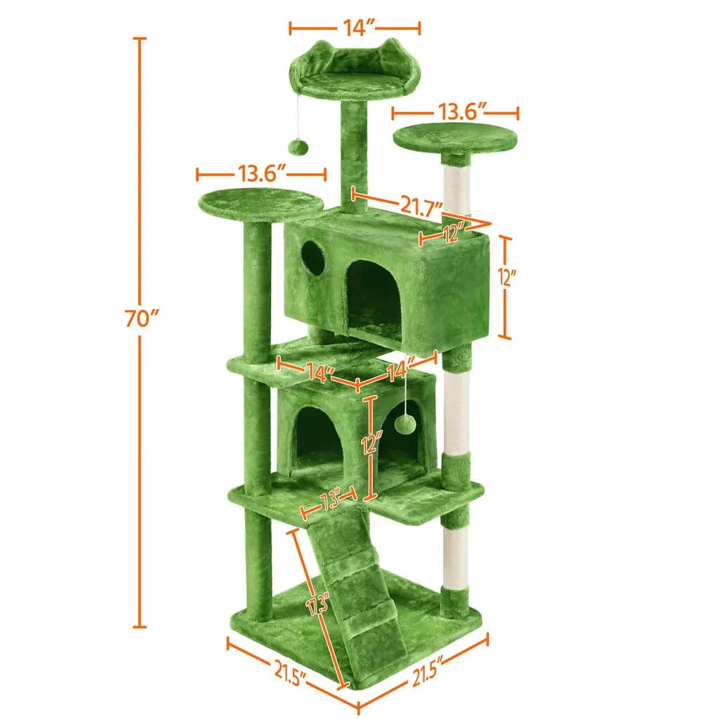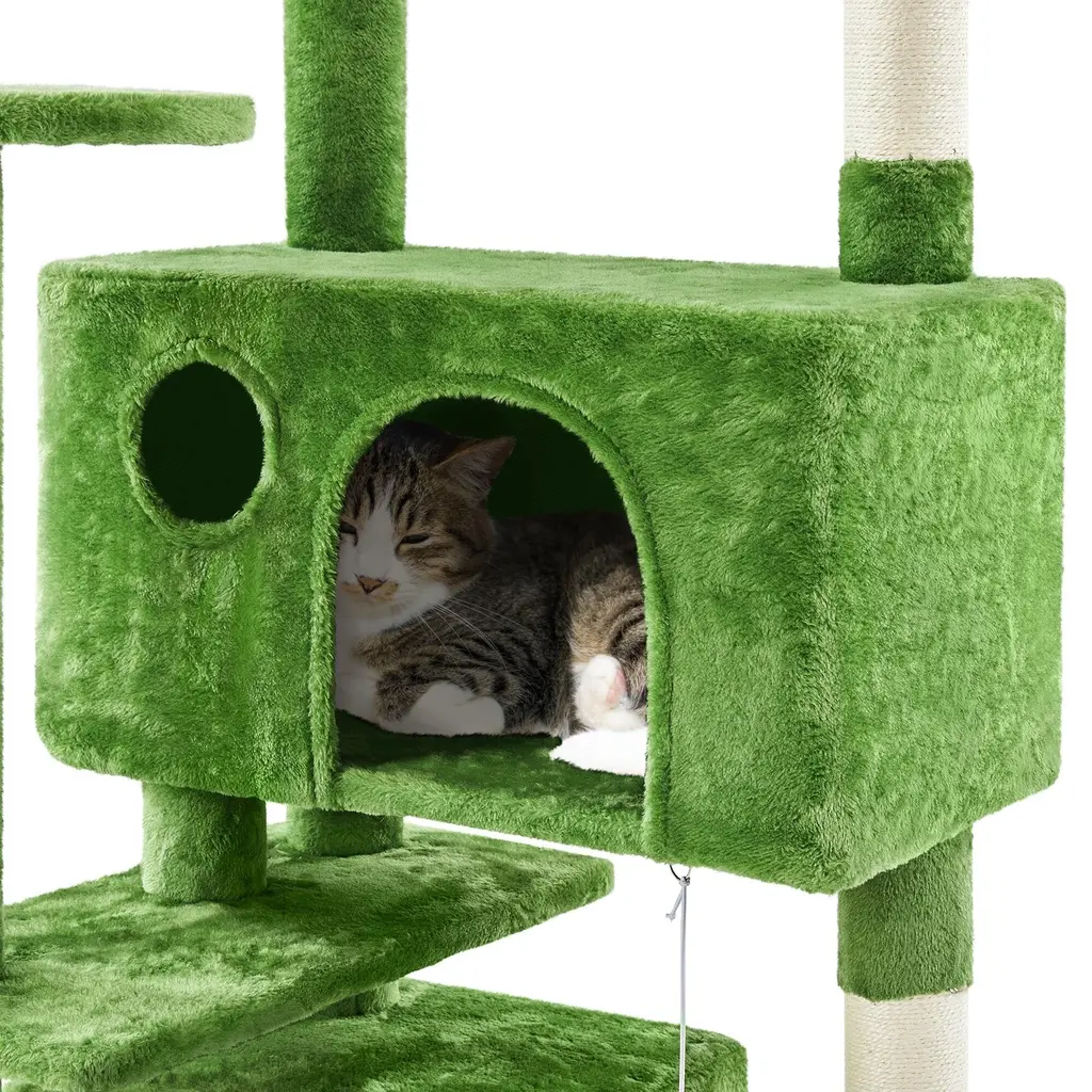 70in Multi-Level Cat Tree Tall Cat Tower Cat Furniture W/condo, Scratching Posts & Dangling Ball For Indoor Cats Activity Center - Green