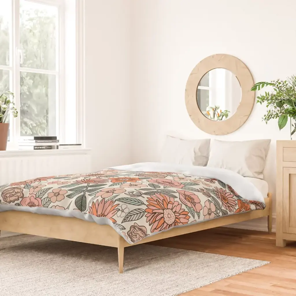 70s Flowers - 70s, Retro, Spring, Floral, Florals, Floral Pattern, Retro Flowers, Boho, Hippie, Earthy, Muted Duvet Cover